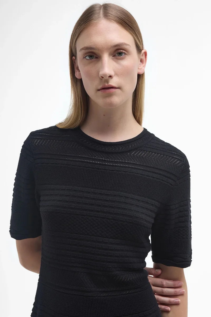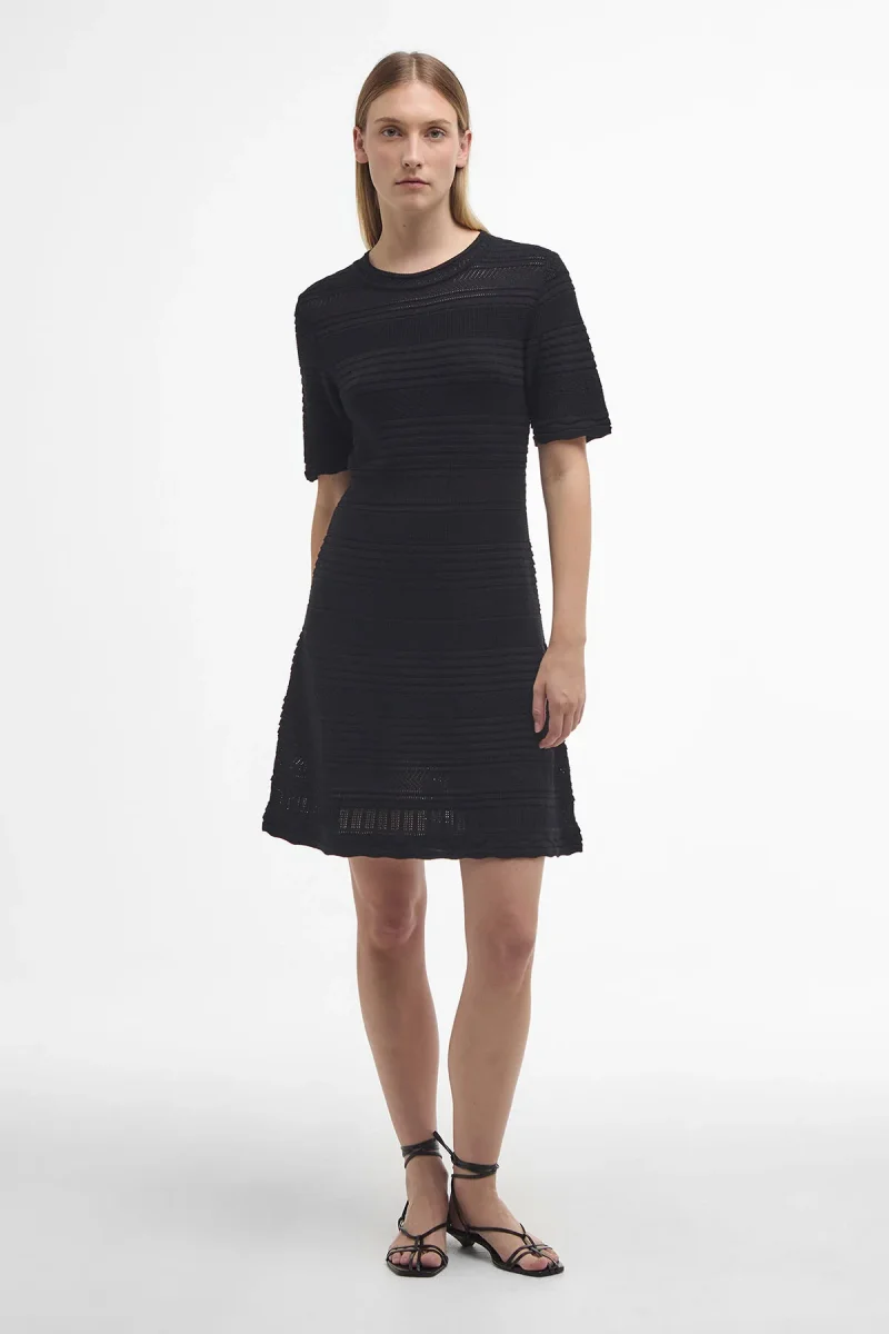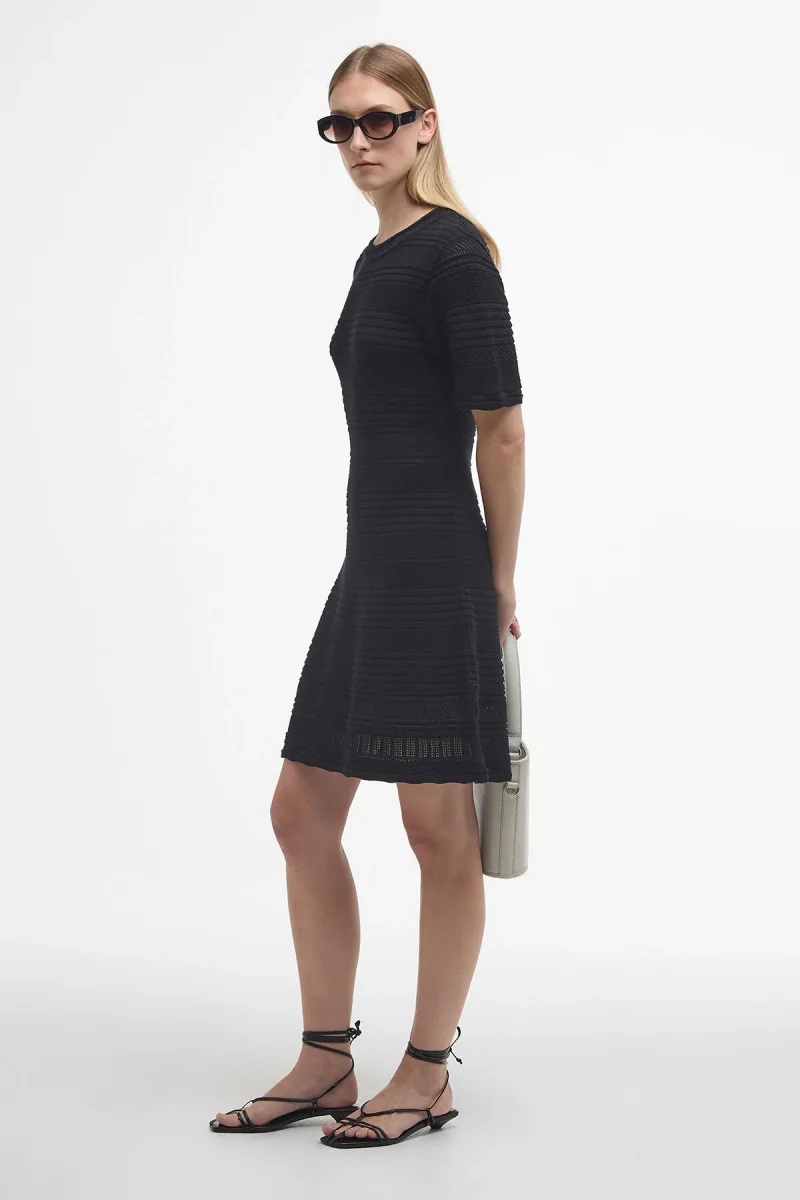 Il mini-abito in maglia Mia è realizzato con cuciture a punto diamante e caratterizzato da una vita aderente e da una silhouette svasata, che esaltano al massimo la figura femminile. Perfetto per un look elegante ma disinvolto, il modello è impreziosito da un badge identificativo in metallo sottile sul retro del collo.
