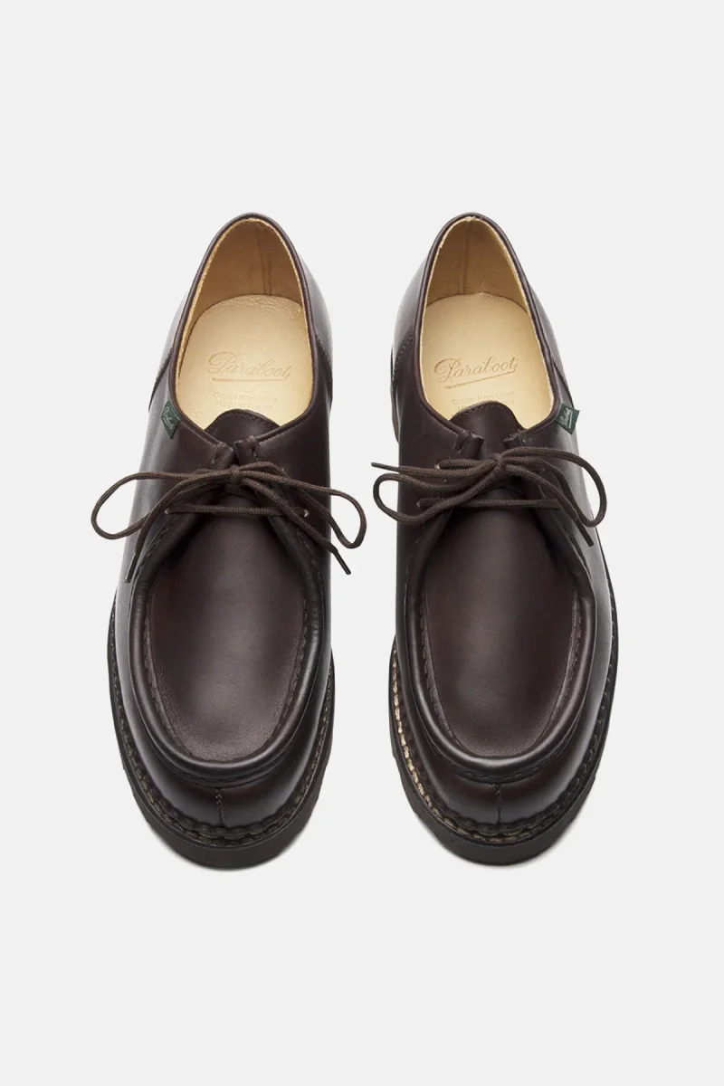 Intergenerazionale e androgino, questo modello del Michael è diventato l’emblema iconico di Paraboot. La sua creazione, a opera della seconda generazione Richard-Pontvert, coincise con la nascita di Michel Richard nel 1945.