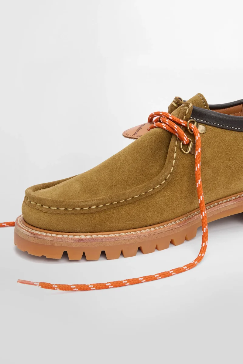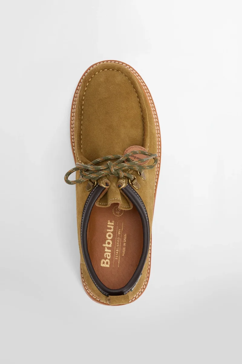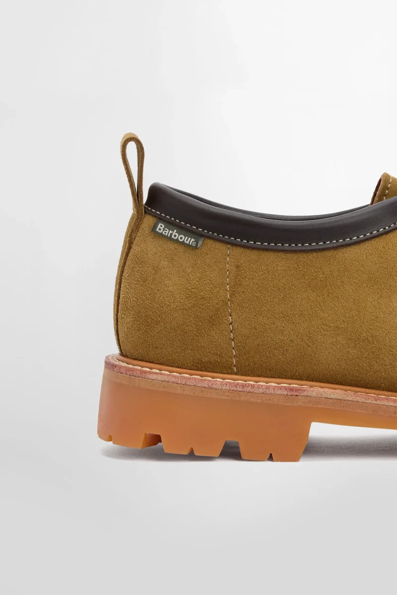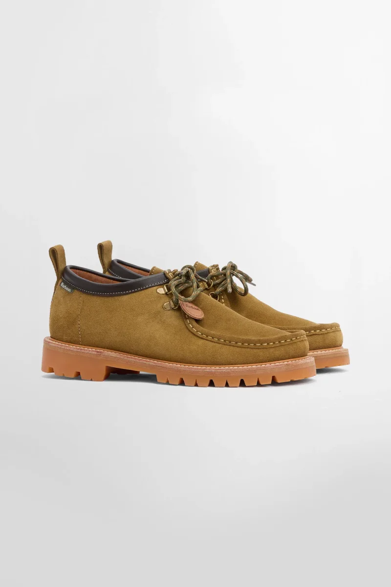Realizzati a mano in Spagna con un’attenzione meticolosa per la qualità e i dettagli, i mocassini stringati con mascherina Coatham Barbour x Wildbunch Styles vantano i materiali più pregiati, con una struttura interamente in pelle scamosciata e una lussuosa fodera in pelle. Dotati di suola Vibram al servizio di una trazione e un’aderenza ottimali, presentano lacci intercambiabili e occhielli a D in ottone anticato, ispirati ai bottoni a pressione delle inimitabili giacche cerate Barbour.