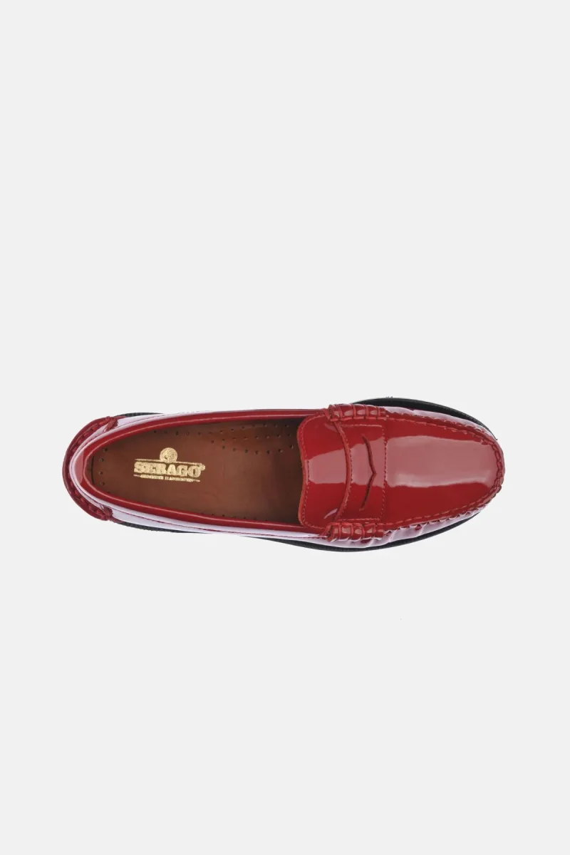 Realizzato in sofisticata pelle verniciata lucida e cucito a mano con la migliore lavorazione artigianale, questo mocassino penny loafer con beefroll presenta tomaia in pelle foderata, soletta in cuoio e suola personalizzata. Un tocco luminoso per le estati in città, tutti i mocassini “Dan” sono un omaggio alla passione dei fondatori del marchio Sebago.