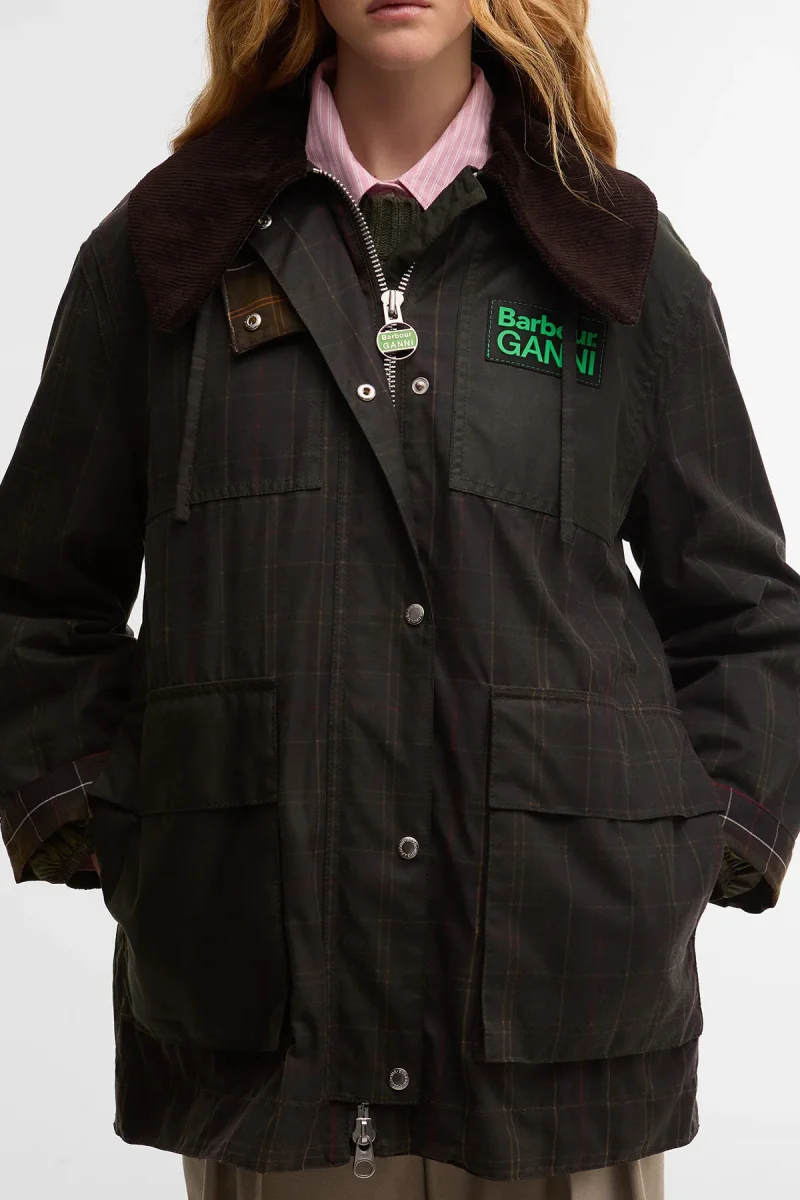 Giunta ormai alla quarta edizione, la collaborazione Barbour x GANNI incarna perfettamente i valori di entrambi i brand per quanto riguarda lo stile, la praticità e la resistenza nel tempo. Questa collezione, caratterizzata dagli inconfondibili tessuti cerati e dalle finiture in tartan di Barbour, rappresenta alla perfezione l’heritage del brand ispirato alla campagna inglese, a cui si aggiunge il tocco giocoso di GANNI, brand scandinavo nato a Copenhagen. I vistosi elementi tipici di GANNI, presenti su giacche cerate, trench, sciarpe, borse tote e altri accessori di Barbour, fanno di questa collezione una celebrazione intramontabile dell’artigianalità e della tradizione.