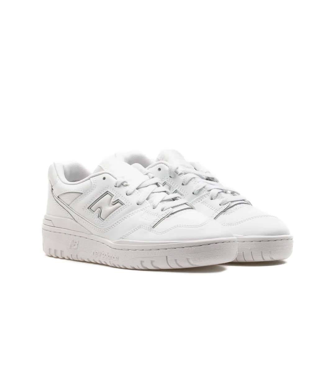 La New Balance 550 è attualmente la scarpa più richiesta del marchio di sneakers di Boston. La sneaker 550 è una retro basket molto accattivante con stile pulito, tomaia in pelle liscia con pannello traforato. La suola ha un doppio colore bianco e grigio.