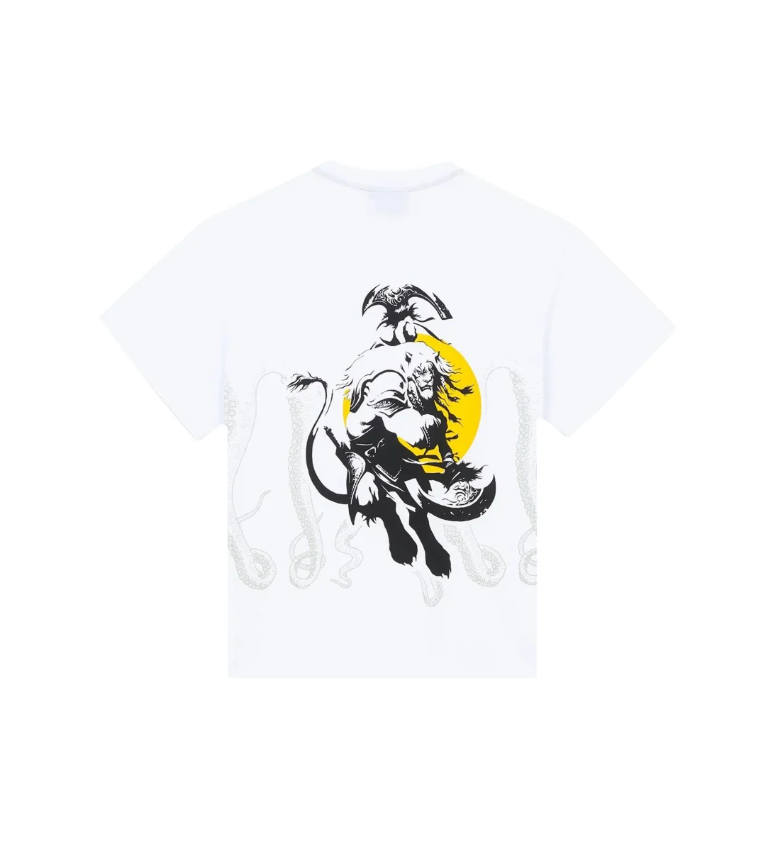 Fantasia epica e streetwear si fondono in un capo iconico. La Octopus Ajani Tee fa parte della collaborazione esclusiva tra Octopus Brand e Magic: The Gathering, ispirata al leggendario Ajani Goldmane, simbolo di forza, giustizia e resistenza nell’universo fantasy del gioco di carte. La t-shirt è realizzata in cotone 100% premium, con fit regular e una stampa grafica potente che unisce l’estetica tentacolare Octopus al mondo di Ajani. Un capo da collezione, pensato per chi ama lo streetwear concettuale e la cultura pop.Perfetta da indossare con pantaloni larghi, cargo o techwear per un look deciso e d’impatto.