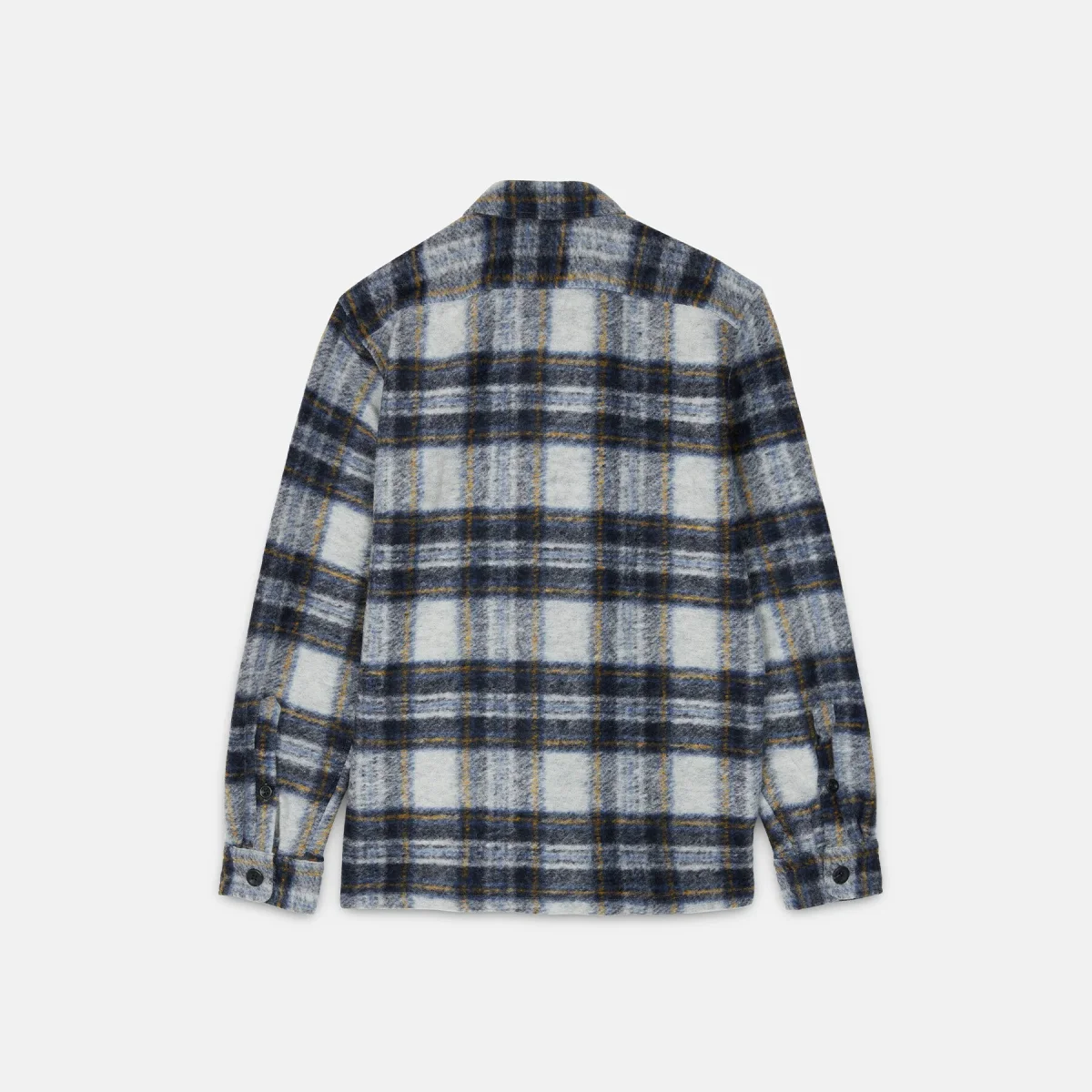 Overshirt in misto lana a fantasia madras con chiusura a bottoni in corozo. Super comoda e pratica grazie alle due tasche sul petto a altre due a filo sui fianchi. Da indossare anche come giacca o sopra ad una t-shirt.