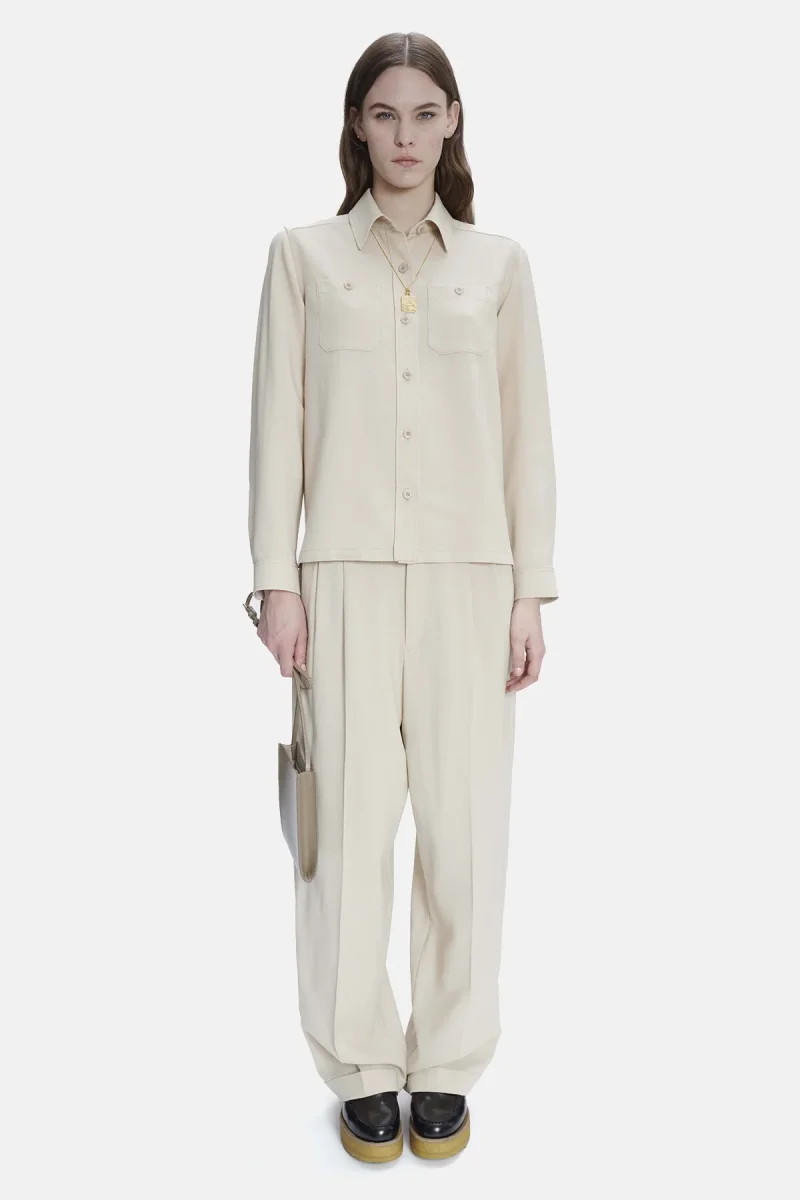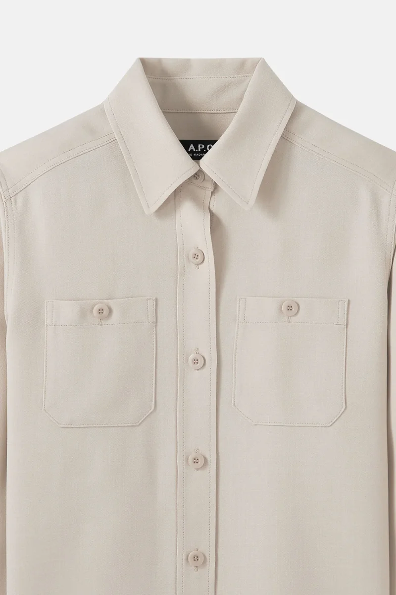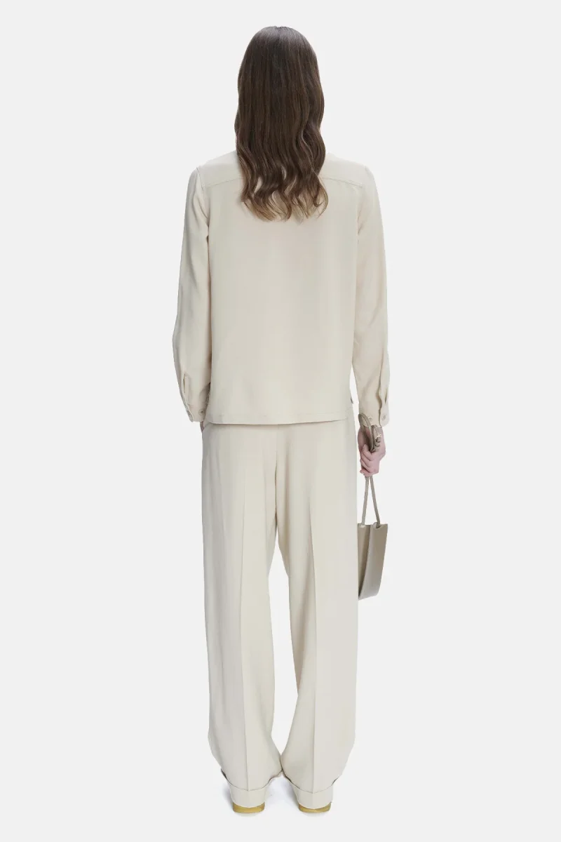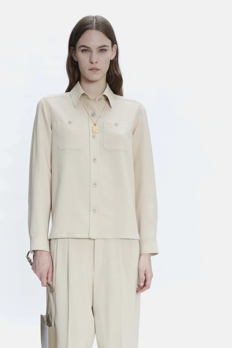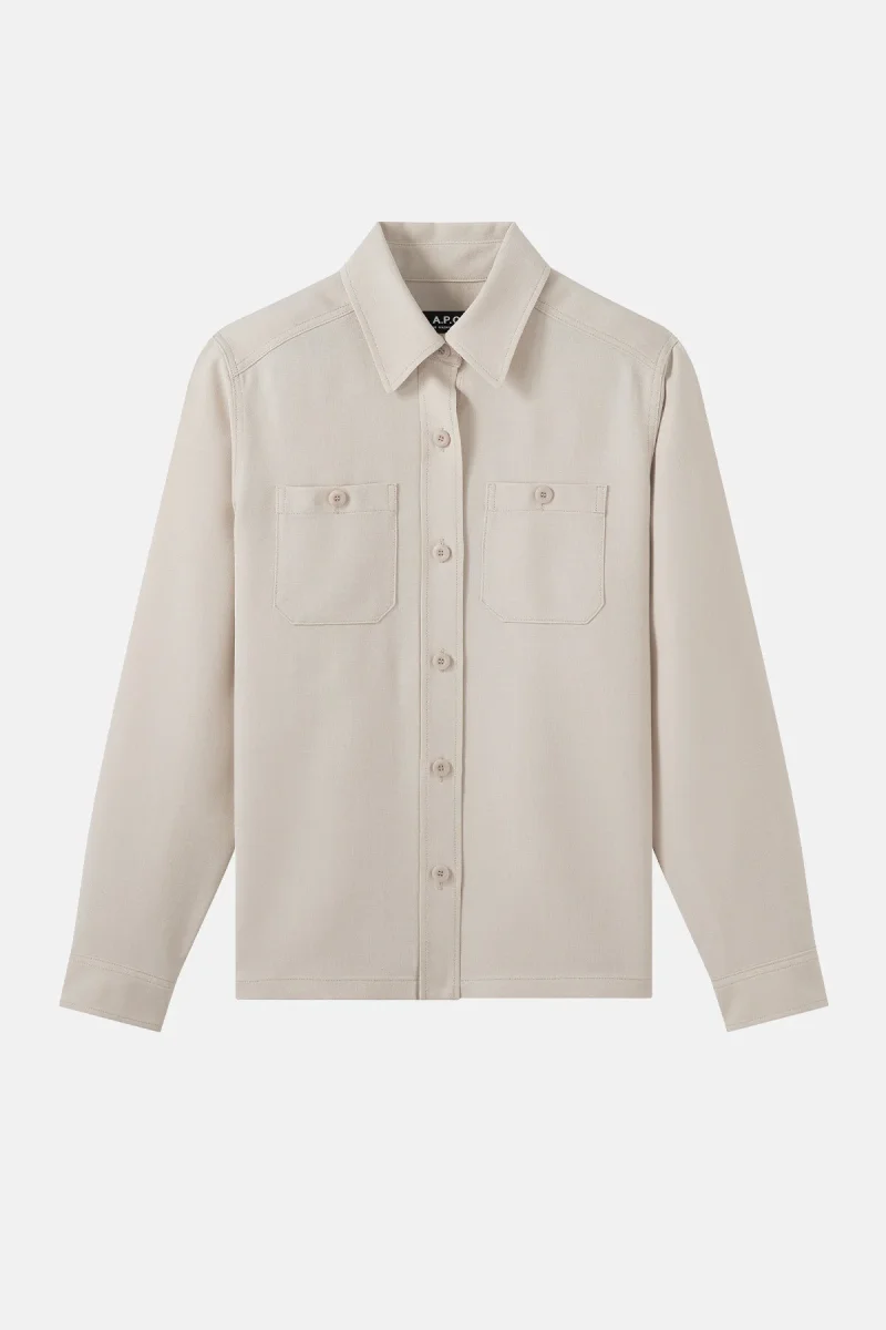 Overshirt in misto lana e viscosa, con collo classico a camicia e chiusura a bottoni.