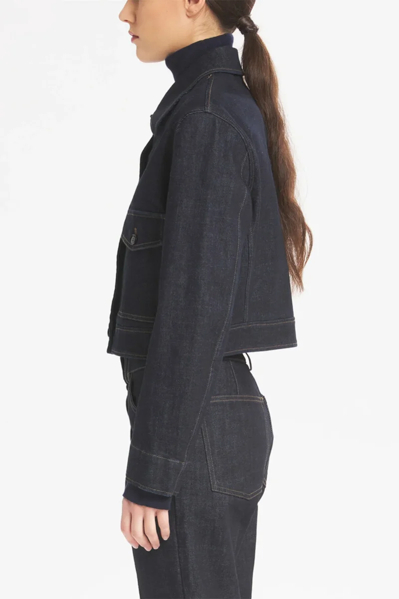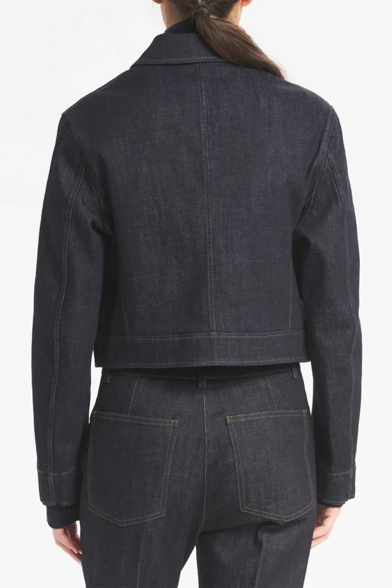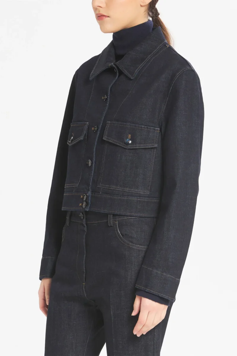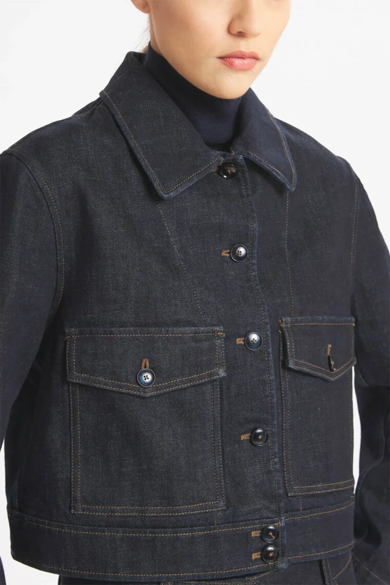 Overshirt cropped con tasche applicate e patta. Chiusura monopetto. Non foderata, con dettagli di cuciture marroni a contrasto.
