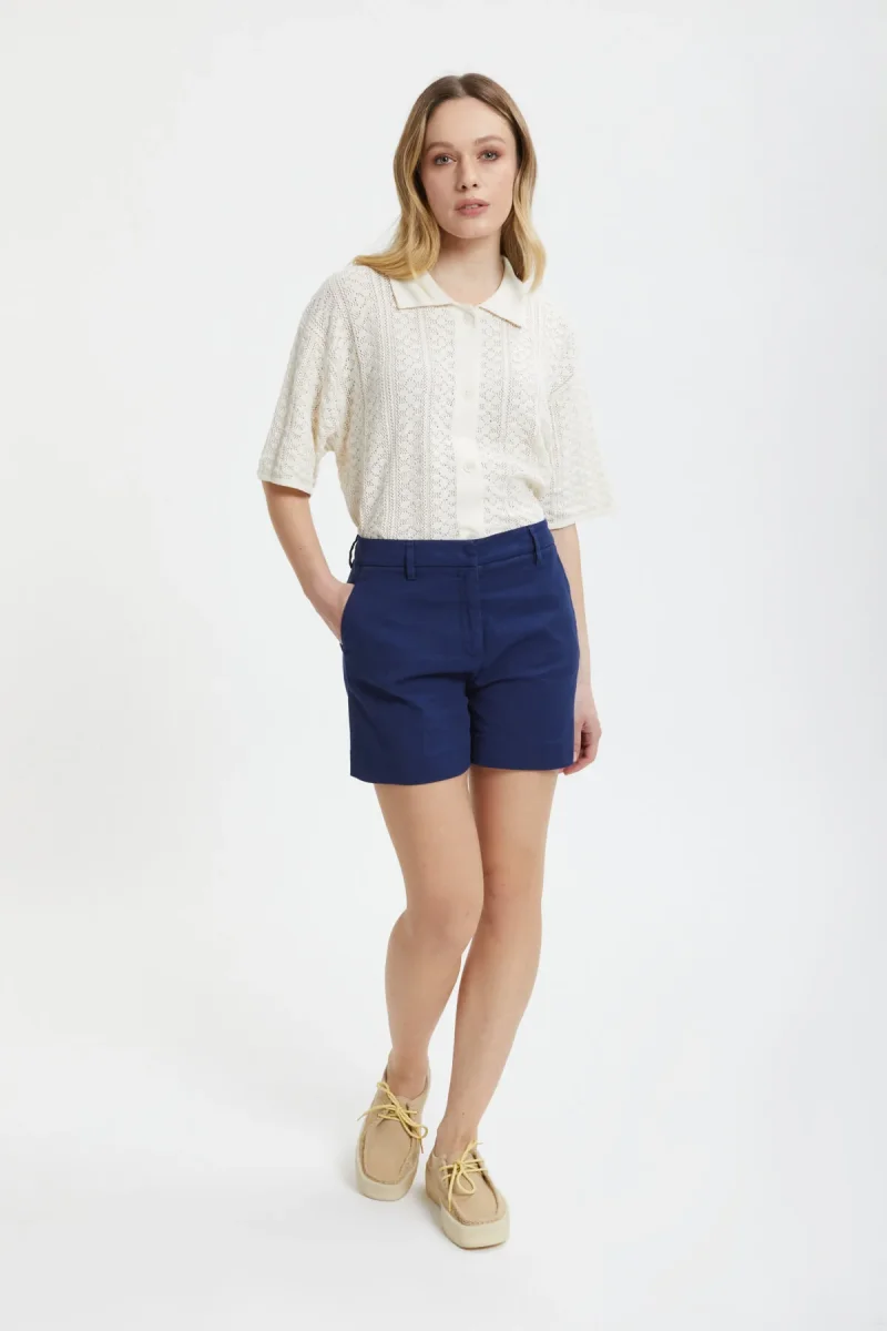 I pantaloncini Birkin di True Royal in gabardine sono caratterizzati da un taglio classico e da vestibilità regular. Il tessuto elasticizzato garantisce comodità e libertà di movimento.