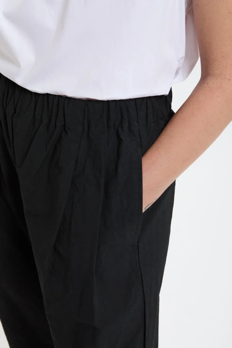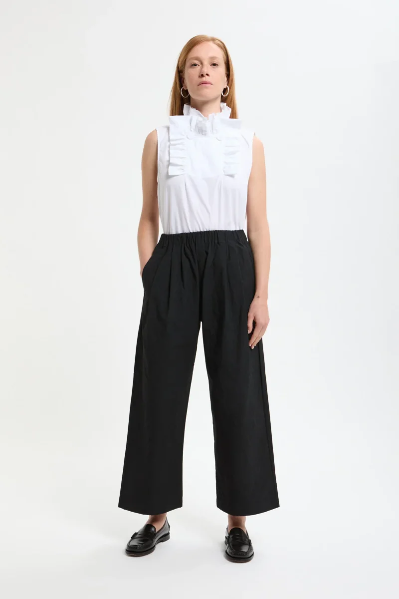 I Pantaloni con Due Pieghe di Kagure, della loro collezione SS25, offrono un’opzione elegante e quotidiana realizzata in 100% cotone. Il design a gamba larga include una cintura elasticizzata, pieghe frontali, coulisse interna e tasche laterali. Semplici ma versatili, questi pantaloni sono perfetti per accompagnarvi durante le stagioni primaverile ed estiva.
