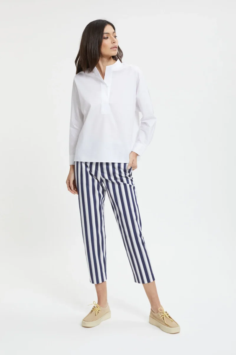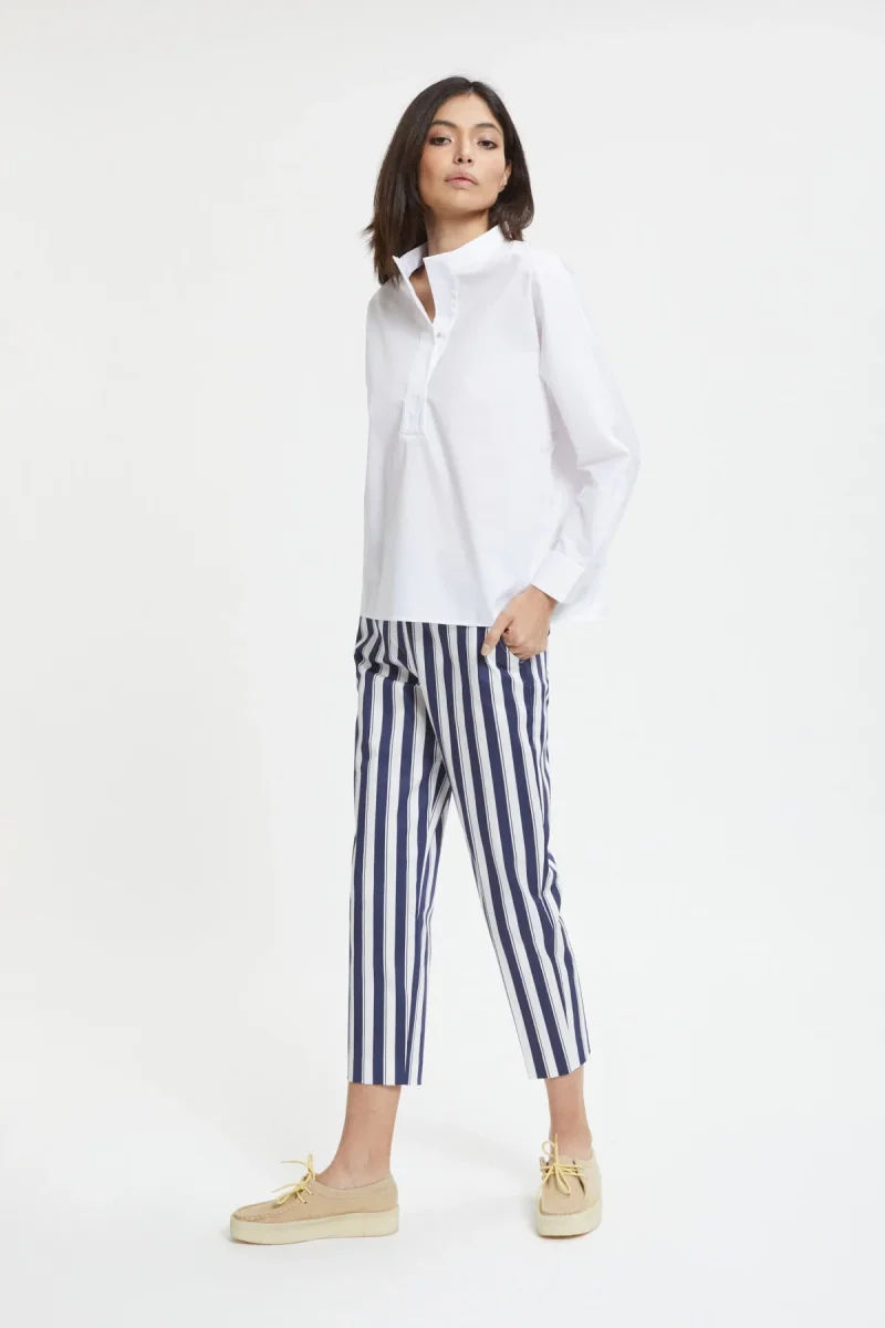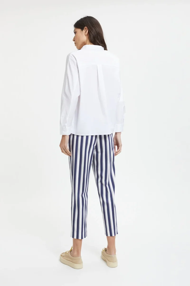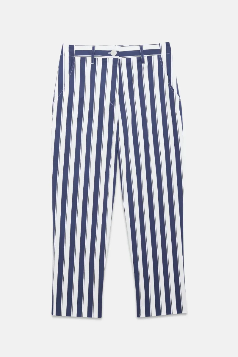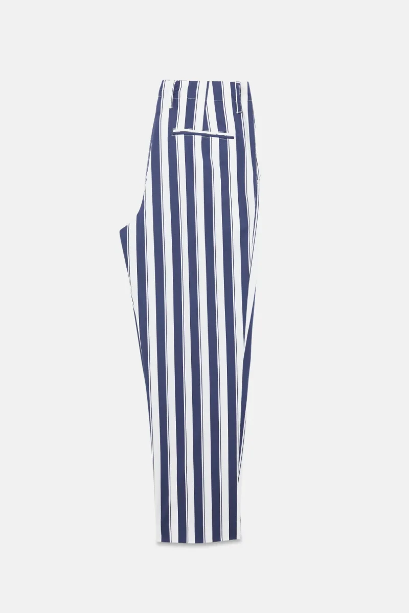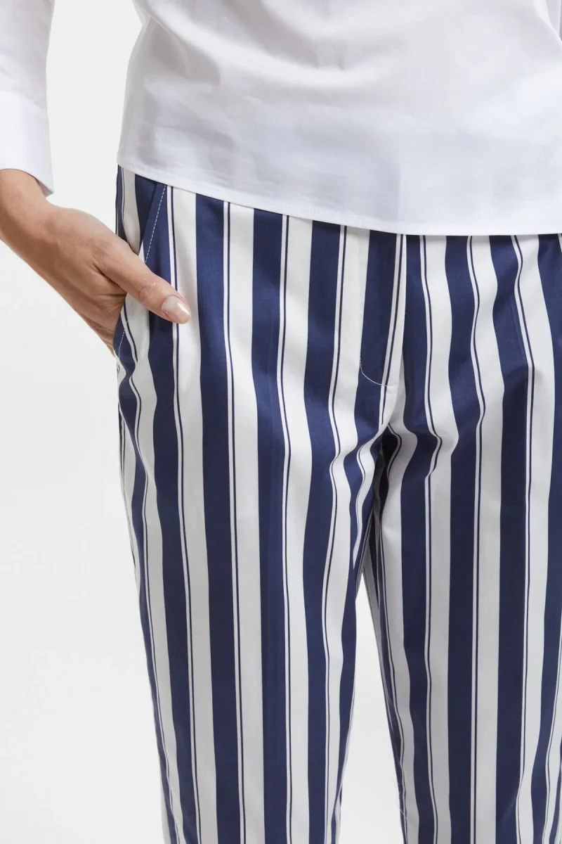 I pantaloni Sarah Riviera di True Royal sono caratterizzati da un taglio dritto a sigaretta. La fantasia a righe e il tessuto leggero li rendono adatti per la stagione estiva.