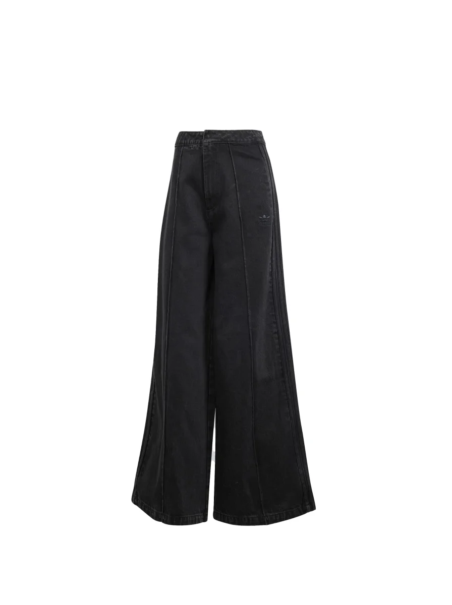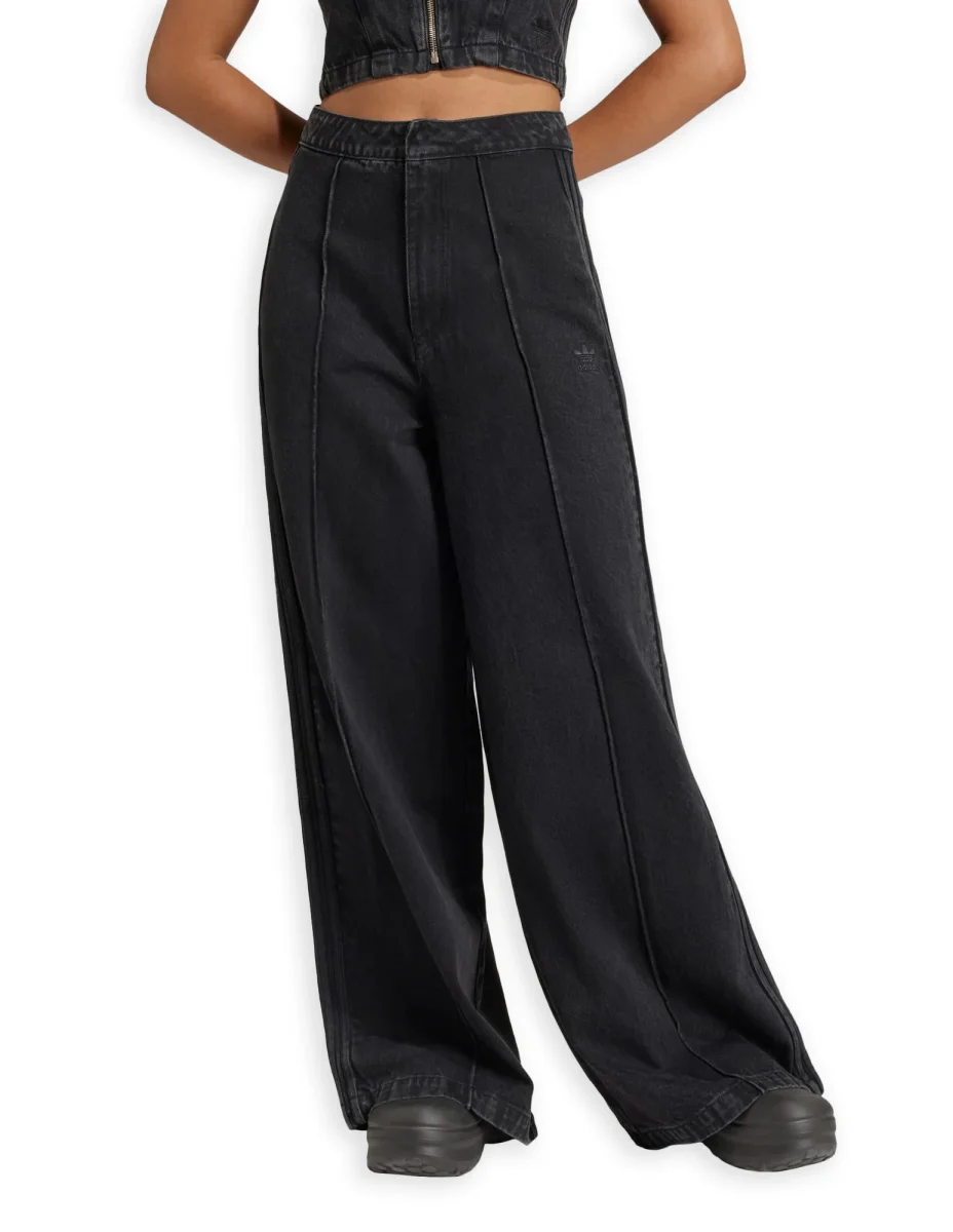 Pantaloni Adidas modello montreal jeans meblde da donna con tasche laterlai vestibilità over cotone morbido.
