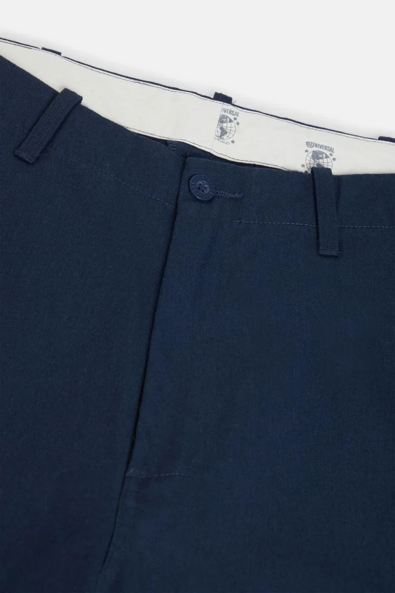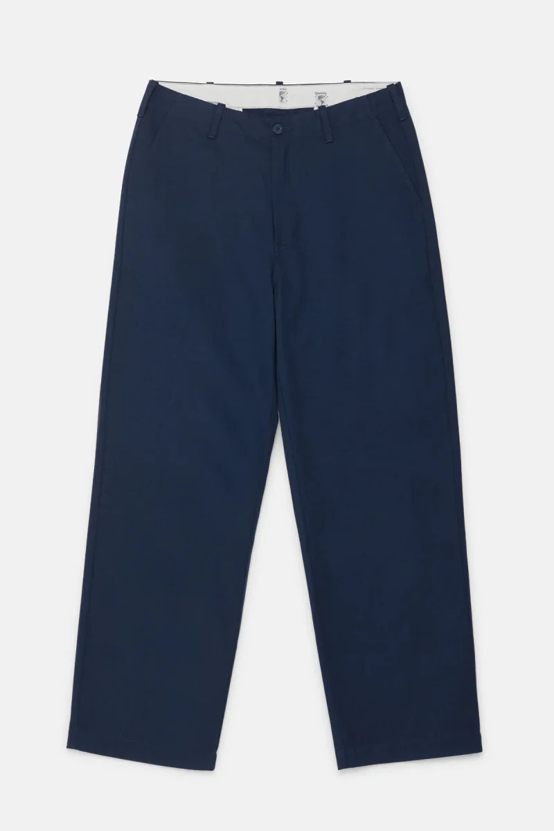 Questi pantaloni a vestibilità standard sono realizzati in tessuto T/C twill strutturato, tessuto con filati spessi per un effetto leggermente robusto. Progettati con una vestibilità ampia sui fianchi e una gamba larga dal coscia all’orlo, offrono una silhouette audace e rilassata. Le tasche posteriori a filetto in stile sartoriale aggiungono un tocco raffinato, mentre la fascia interna in vita è foderata con tessuto marchiato con l’iconico logo UNIVERSAL OVERALL. Rifiniti con bio-wash per una mano morbida e un aspetto leggermente sbiadito, ispirato al vintage.