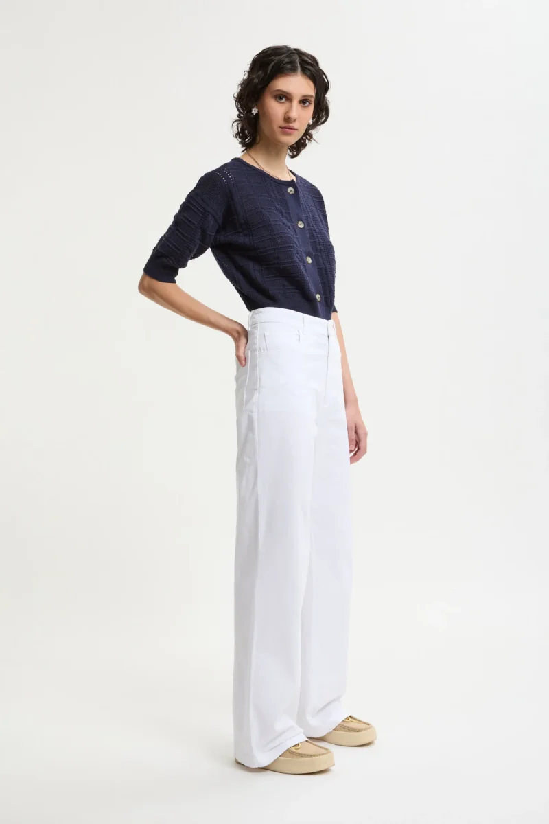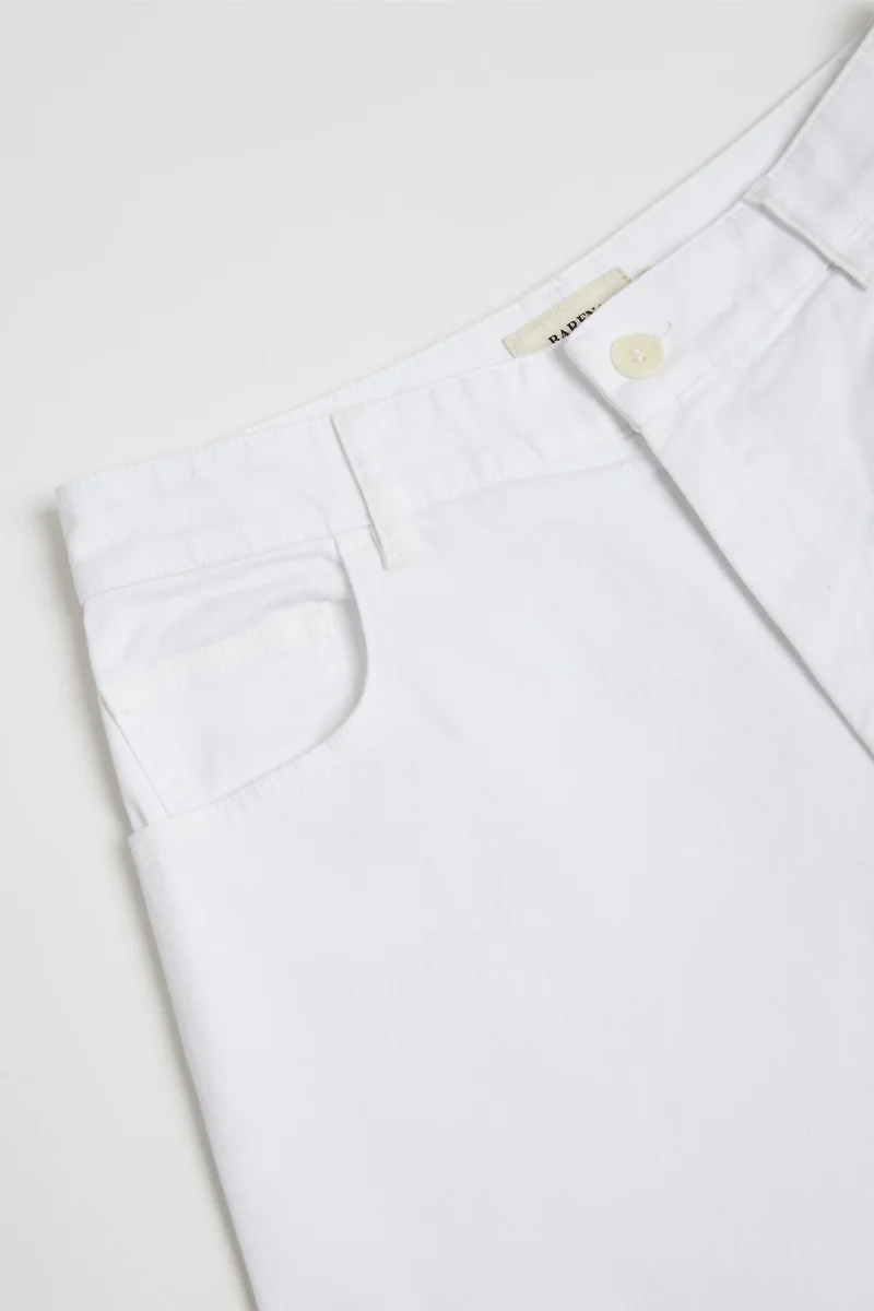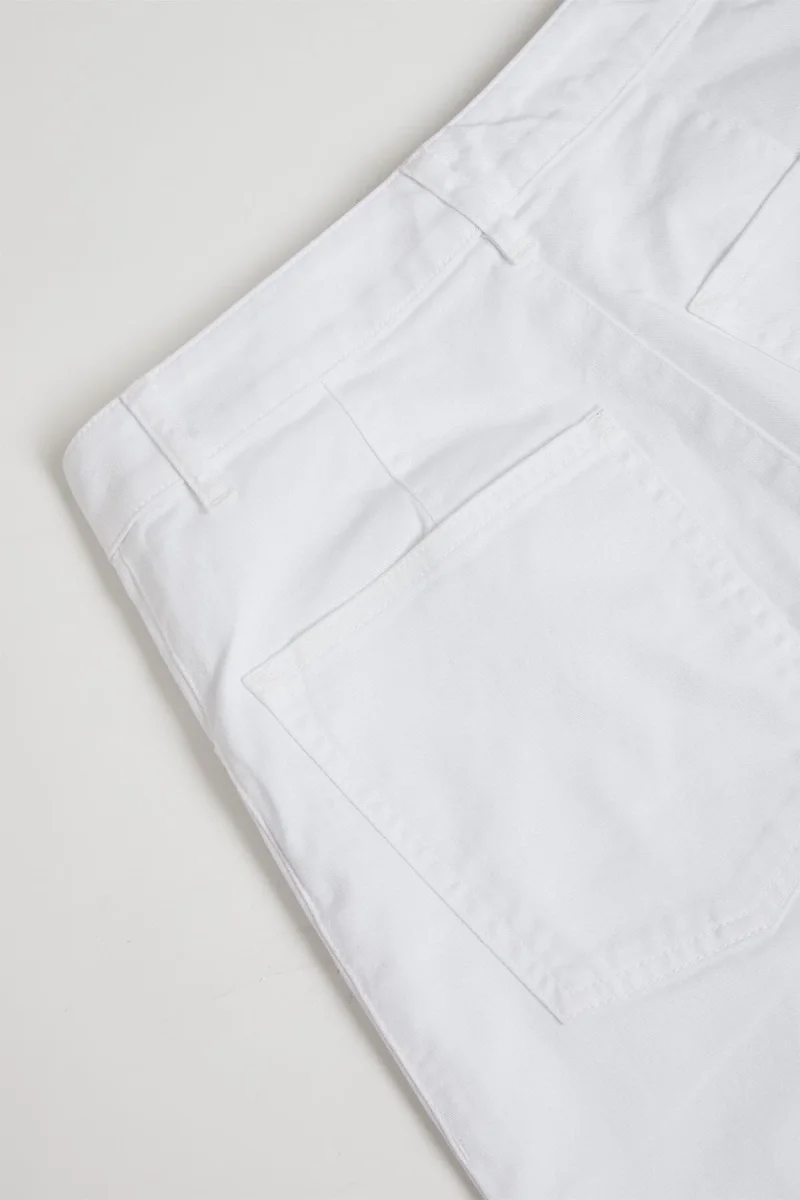 I pantaloni “Barone Travesso” di Barena sono realizzati in tessuto bianco, offrendo un design elegante e versatile. Presentano una chiusura frontale con bottone e zip, passanti per cintura e tasche laterali. La vestibilità è regolare, ideale per un look sia formale che casual. Questo capo riflette l`artigianalità e l`attenzione ai dettagli tipiche del brand veneziano.