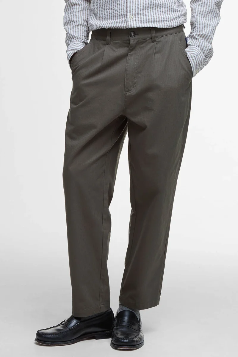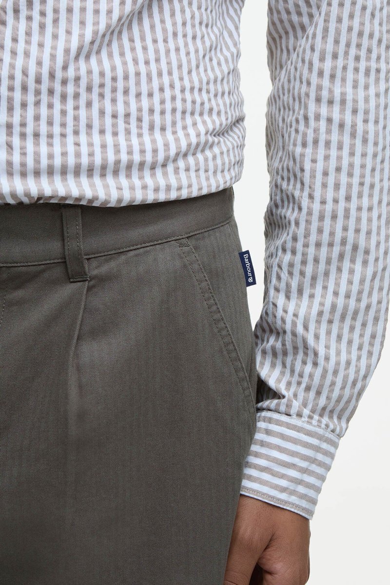 Il modello Bayview è realizzato in twill con motivo a spina di pesce e impreziosito da pinces per offrire una rivisitazione casual dei classici pantaloni sartoriali. Questi pantaloni dalla vestibilità comoda sono perfetti da abbinare a un paio di sneakers o calzature dal design brogue.