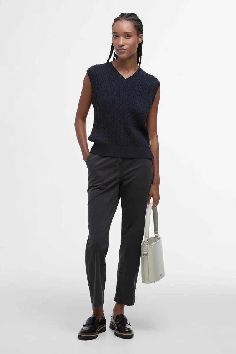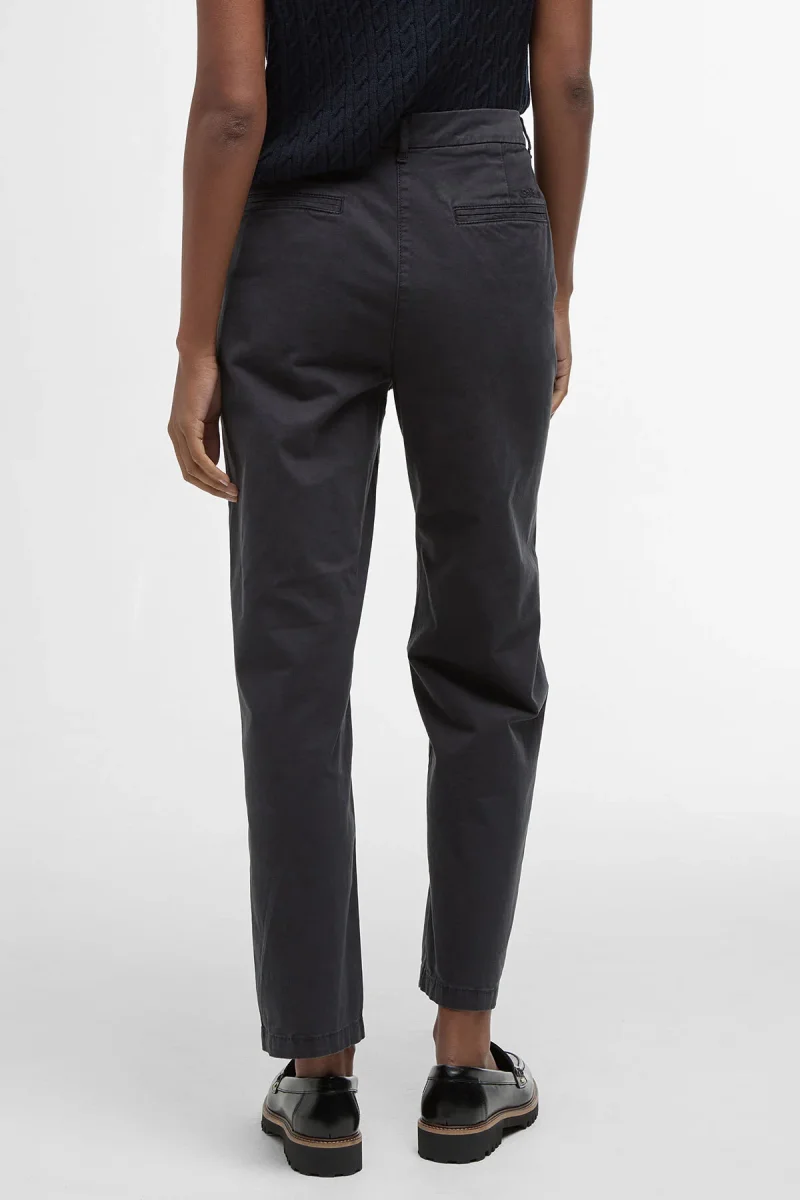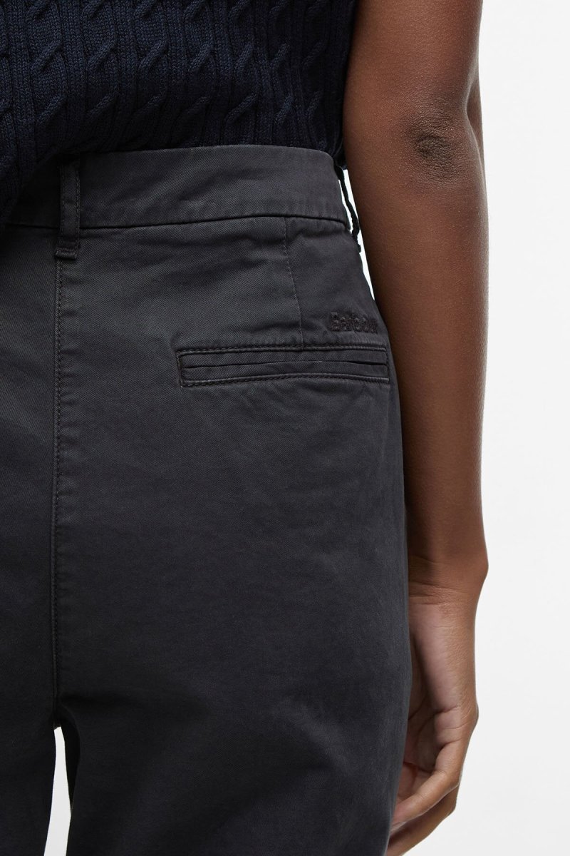 Un paio di pantaloni chino semplici e versatili da indossare tutti i giorni, realizzati in twill di cotone elasticizzato per offrirti un comfort ottimale tutto il giorno. Il modello è dotato di tasche laterali oblique e tasche a filetto sulla parte posteriore per consentirti di avere sempre a portata di mano i tuoi oggetti essenziali. Il logo Barbour ricamato sopra la tasca posteriore destra dona al capo un tocco finale discreto ma inconfondibile.