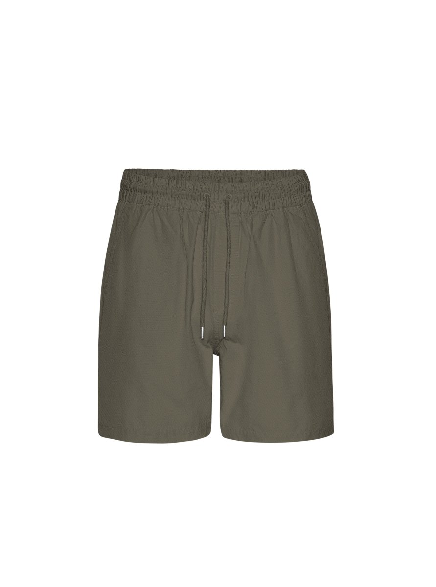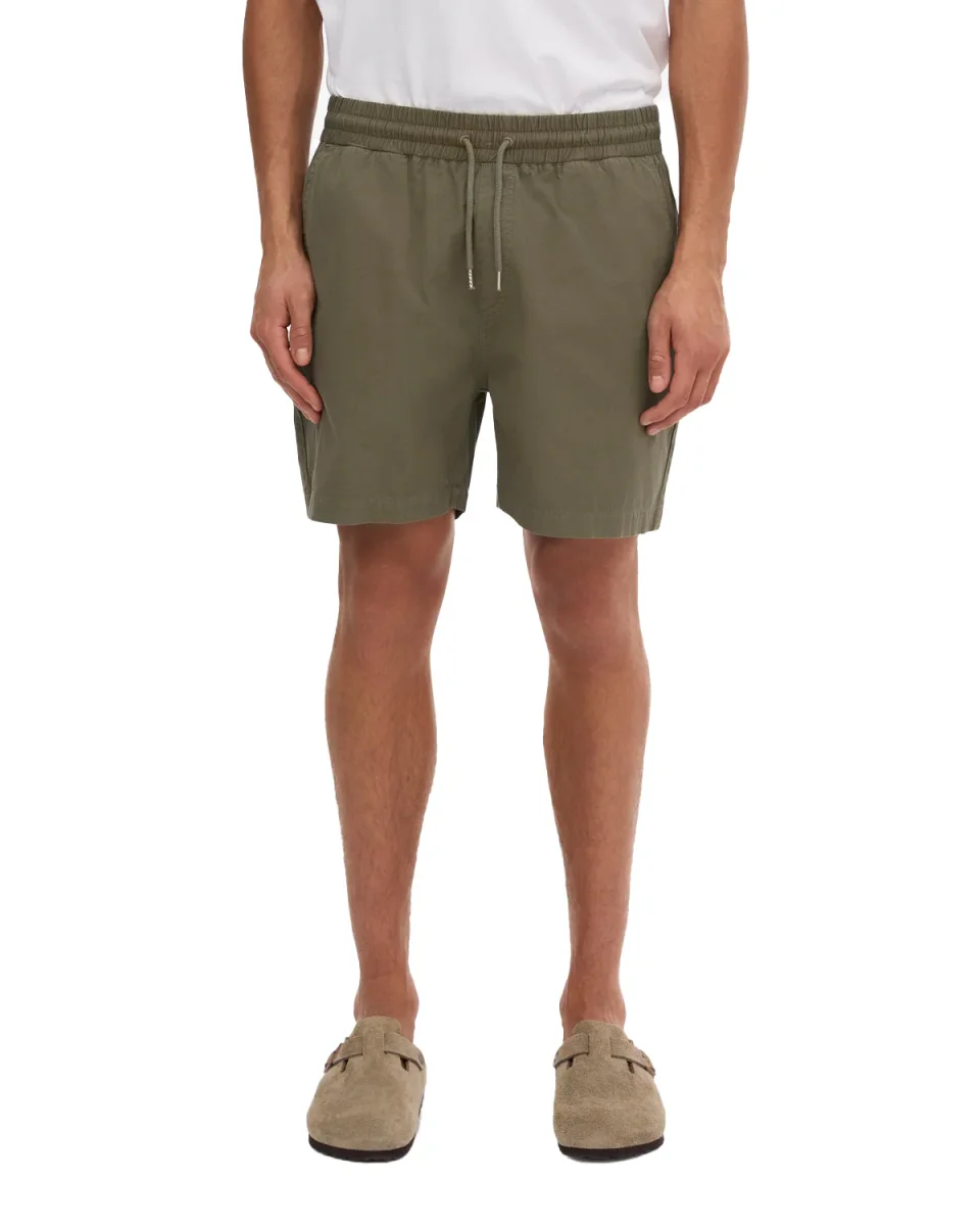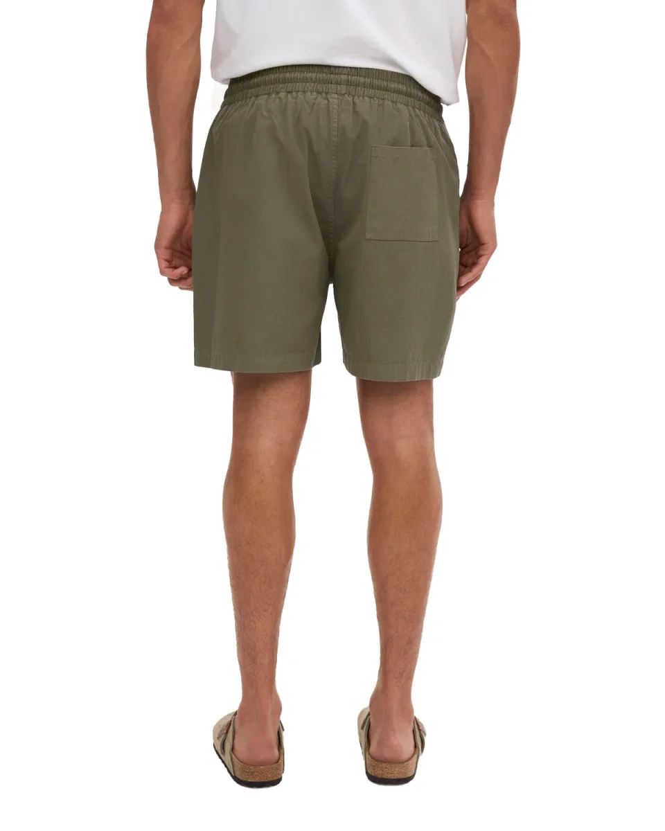 pantaloni corti di Colorful Stanbdard in cotone organico con elastico in vita e lunghezza media.