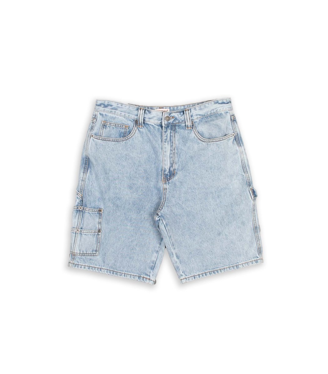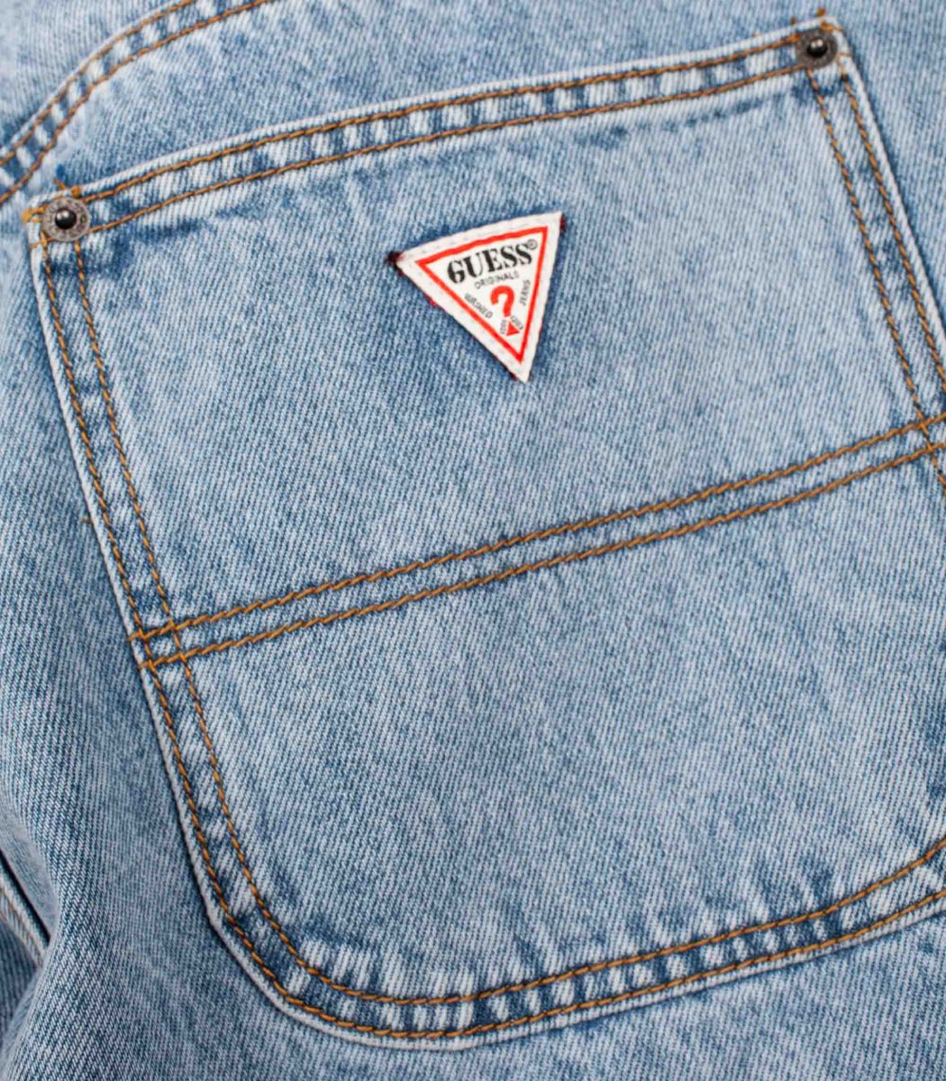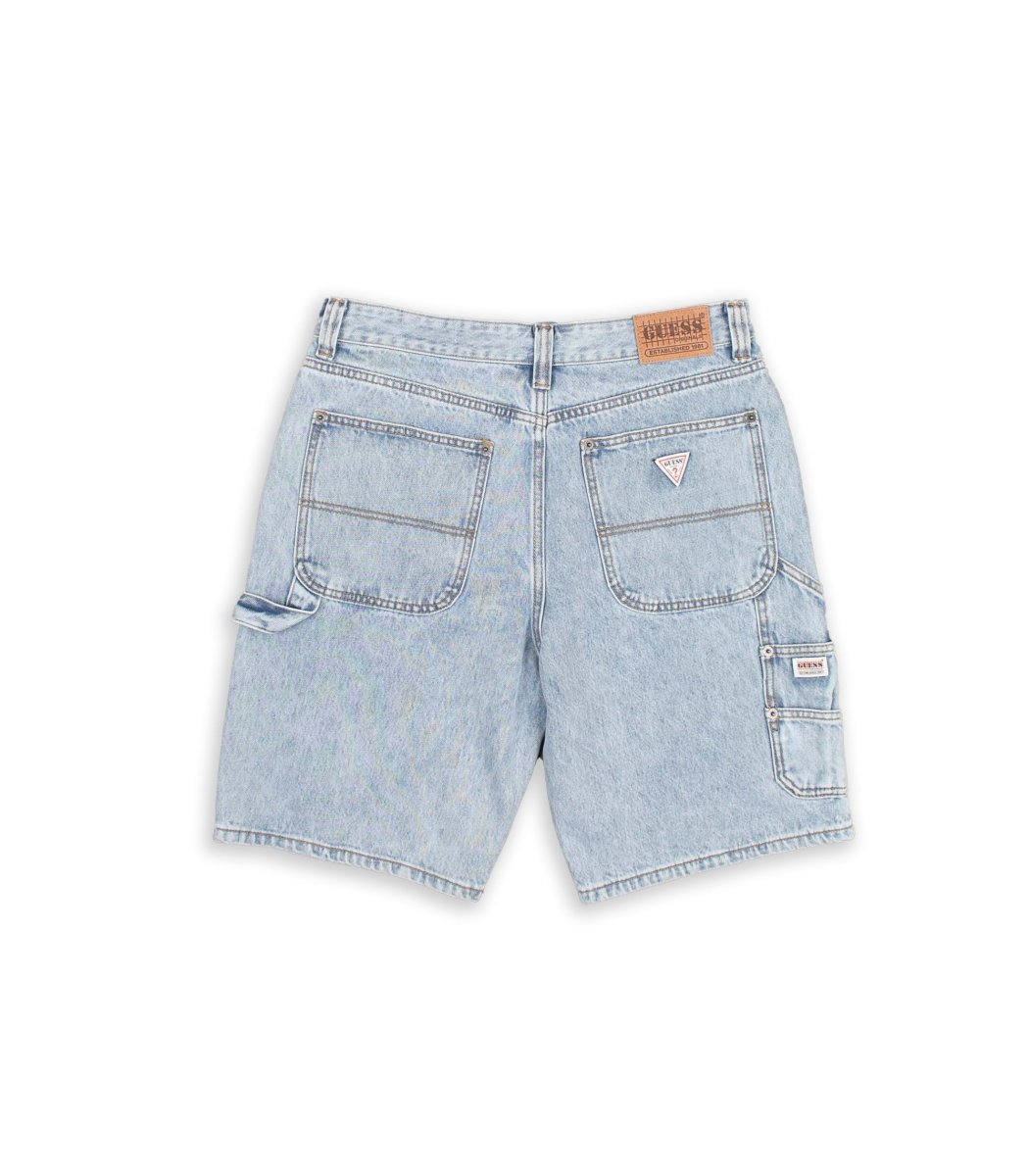 Pantaloni corti Guess colore blu chiaro da uomo modello carpenter con tasche sul retro e logo ricamato cotone morbido vestibilità regolare.