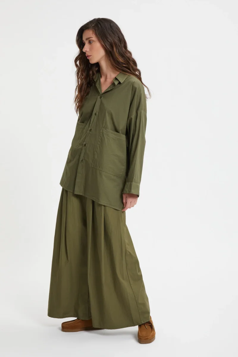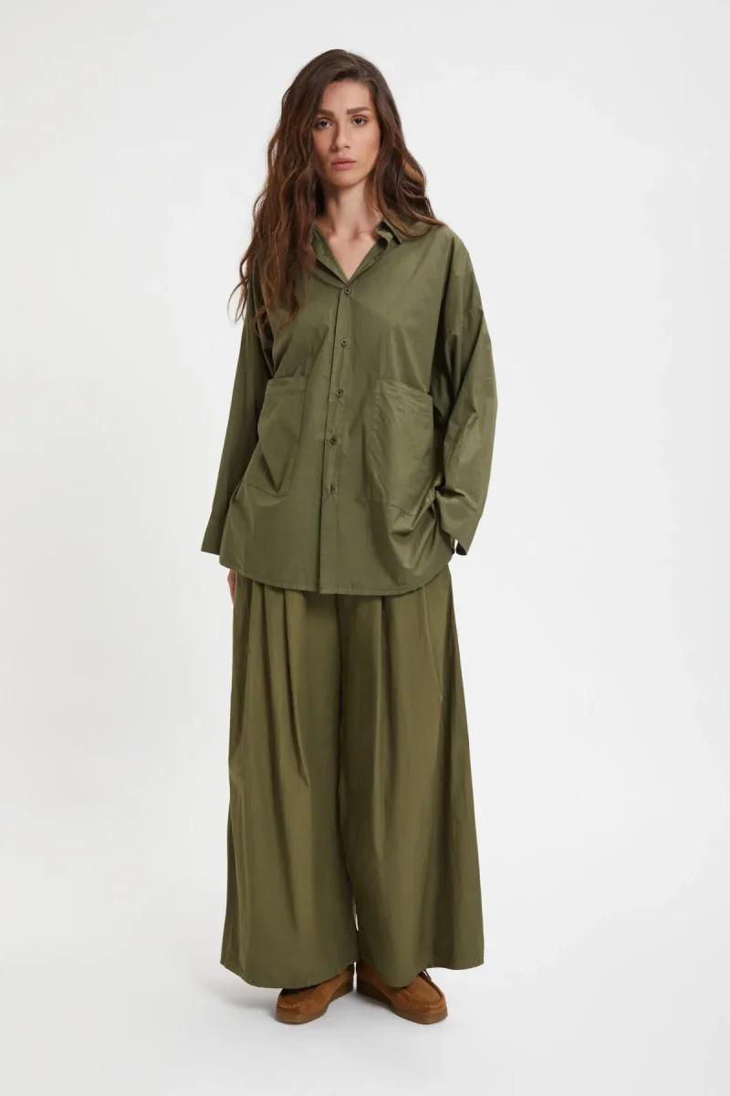 Pantaloni Labo.Art in cotone con taglio ampio e svasato ed elastico in cintura. Made in Italy.