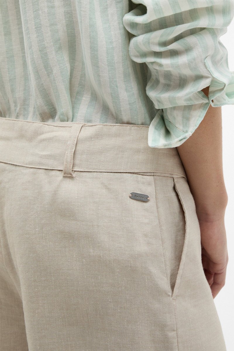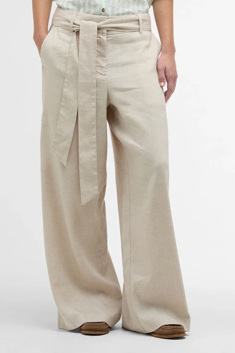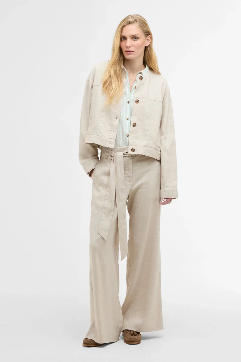 I pantaloni Gabby a gamba ampia di Barbour sono realizzati in misto lino traspirante e offrono un look comodo ma raffinato. Caratterizzati da un’elegante silhouette a gamba ampia, sono dotati di una cintura in tessuto da annodare in vita e di tasche con apertura laterale per una maggiore praticità. Rifiniti da una sottile barretta identificativa sul girovita, sono perfetti per sfoggiare un look estivo disinvolto.