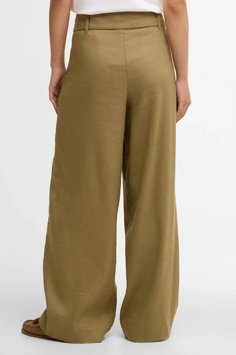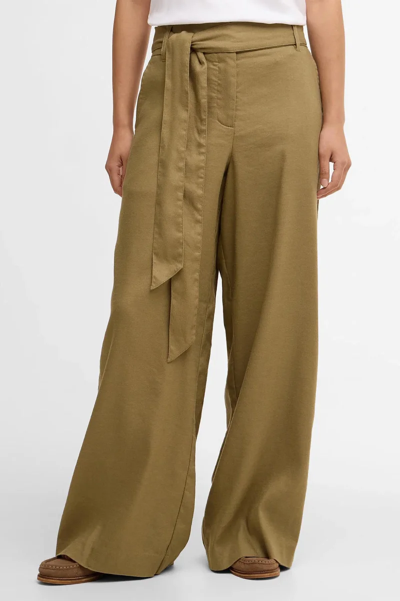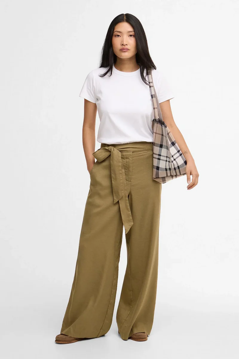 I pantaloni Gabby a gamba ampia di Barbour sono realizzati in misto lino traspirante e offrono un look comodo ma raffinato. Caratterizzati da un’elegante silhouette a gamba ampia, sono dotati di una cintura in tessuto da annodare in vita e di tasche con apertura laterale per una maggiore praticità. Rifiniti da una sottile barretta identificativa sul girovita, sono perfetti per sfoggiare un look estivo disinvolto.