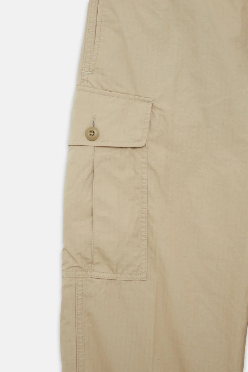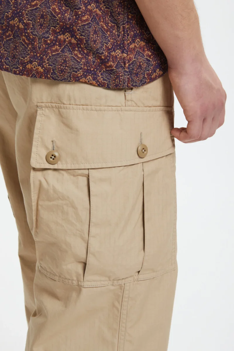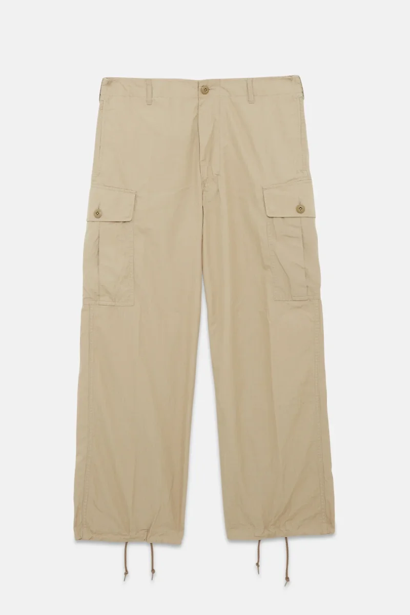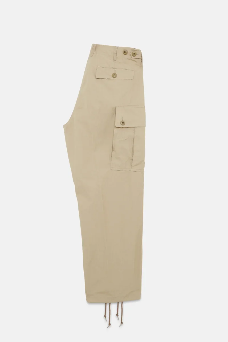I pantaloni militari di BEAMS PLUS sono ispirati ai pantaloni in popeline ripstop dell’esercito americano degli anni ’60. Le tasche laterali sono doppie, con una piccola tasca a toppa interna, ideale per separare e riporre piccoli oggetti come chiavi e cellulari. Inoltre, è stato mantenuto l’originale nastro utilizzato per l’emostasi e, aggiungendo un anello a D all’estremità, è stato trasformato in un portachiavi. Una coulisse è attaccata all’orlo, permettendo di personalizzare la silhouette.