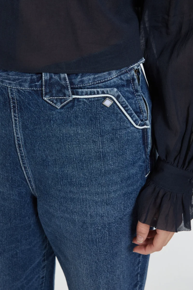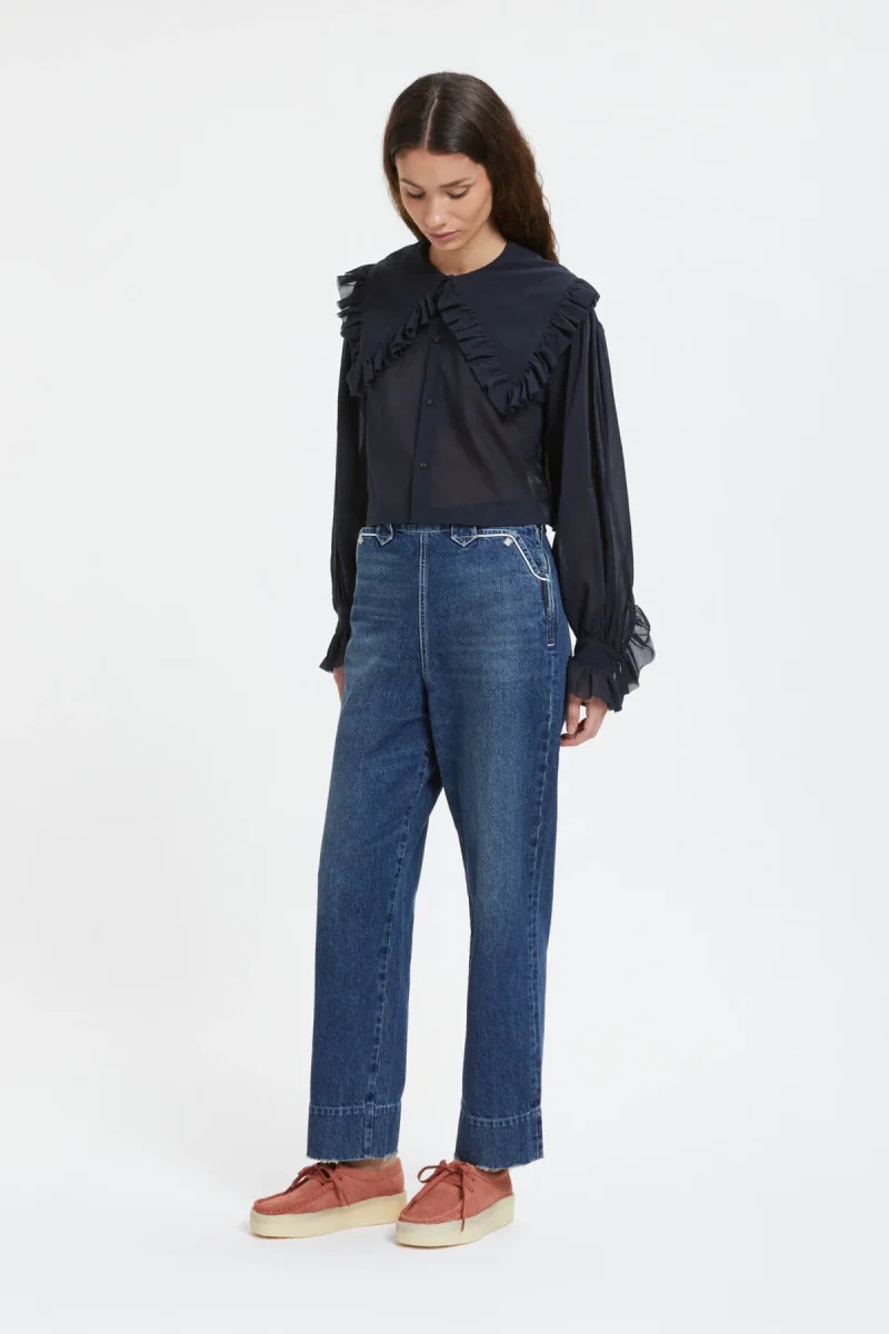 Si basano sul Lunch Pant, un pantalone in denim creato per le donne. La coulisse è posizionata all’interno della vita in modo da non interferire con le cerniere laterali, così da poter regolare la vita. Gli orli sono naturalmente rovinati come se fossero stati consumati nel tempo. Il denim giapponese è spesso e solido (12 once), ma anche morbido e con una finitura vintage.