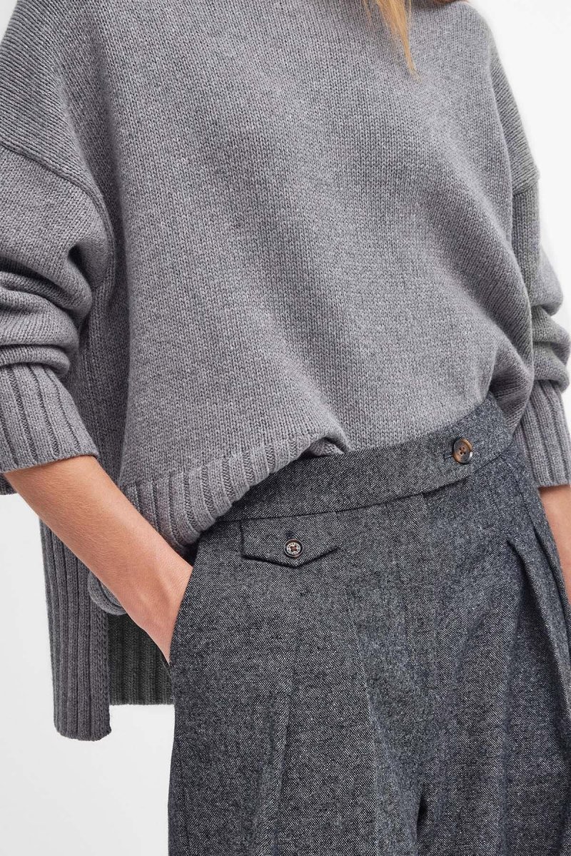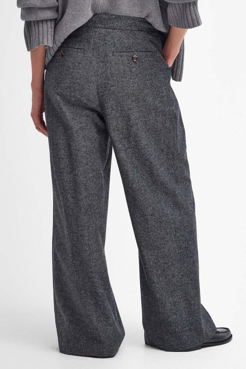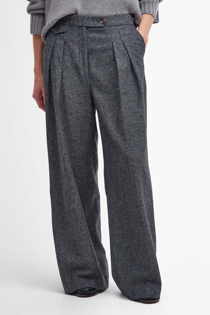 Aggiungi un tocco di qualità senza tempo al tuo guardaroba con capi classici e sofisticati, confezionati in tessuti pregiati come quello dei pantaloni Veronica a gamba ampia di Barbour. Realizzato in misto lana Donegal e seta traspirante, questo modello è caratterizzato da un taglio a vita alta con pieghe e tasche laterali. Per un look completo, consigliamo di abbinarlo al Blazer Paulette Mendy.