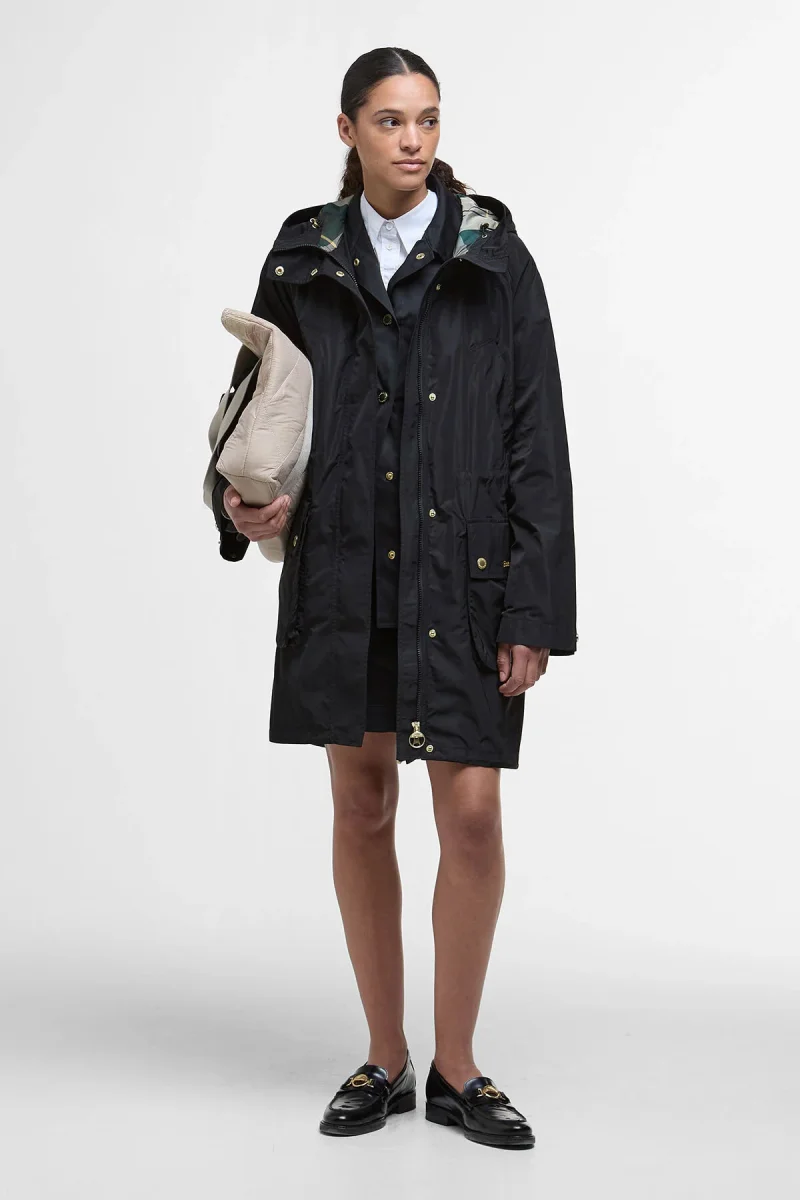 Un guardaroba che si rispetti non è al completo senza un capospalla impermeabile e il parka antipioggia Una firmato Barbour è la versione perfetta da aggiungere alla propria collezione. Questo capospalla a coda di pesce è realizzato in un tessuto leggero e traspirante e foderato nel classico tartan Barbour. Grazie ai polsini elasticizzati e alla coulisse in vita, ti offre una protezione eccezionale dal freddo invernale.