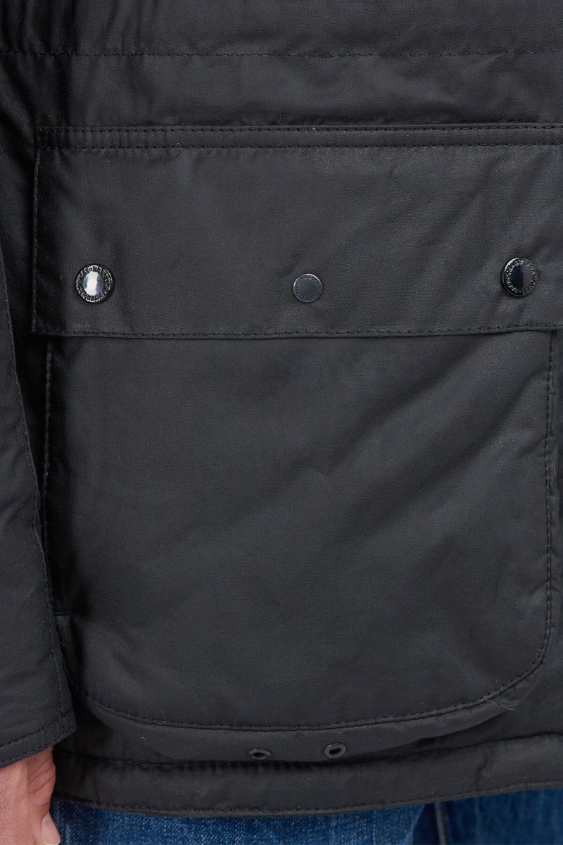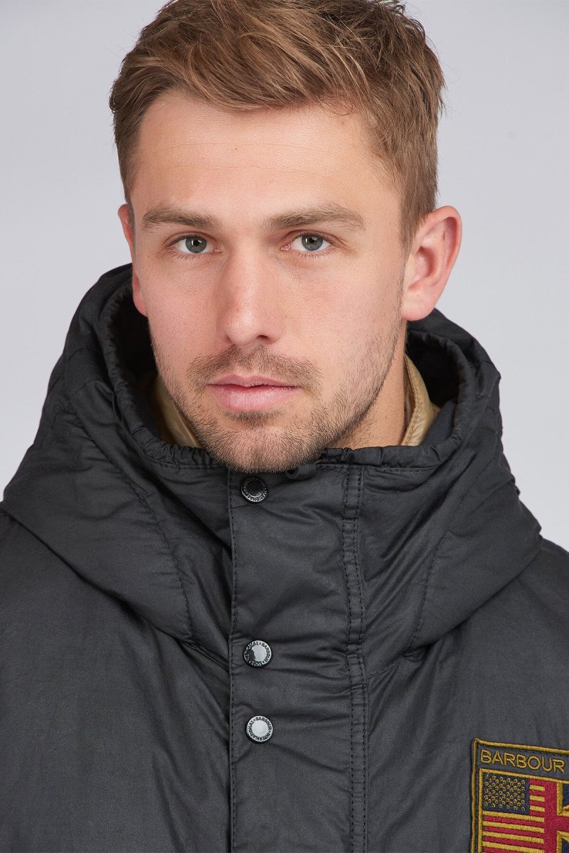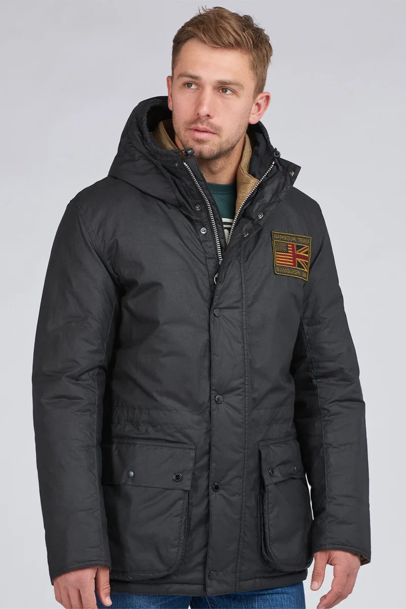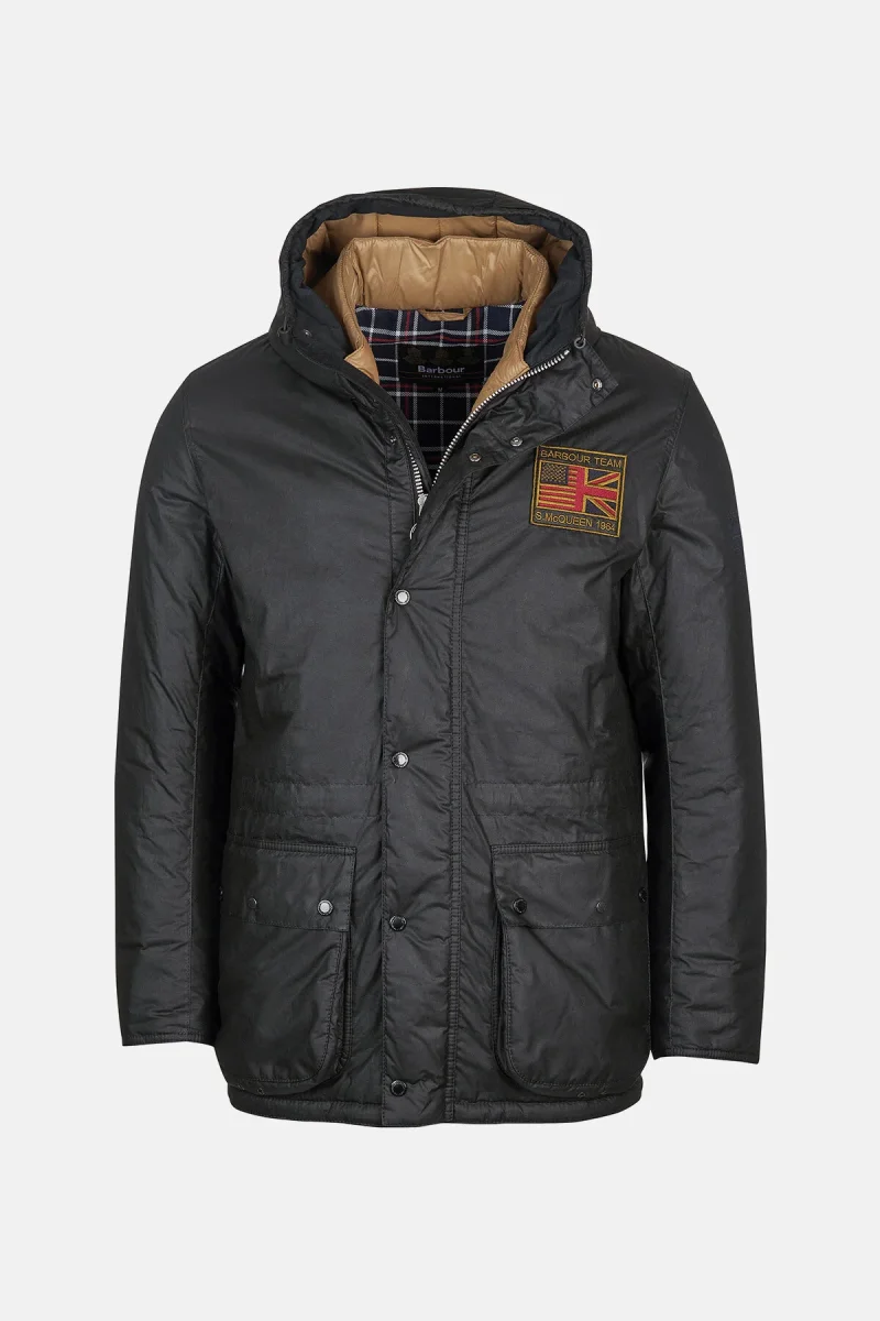 Il parka invernale cerato Steve McQueen Terrance è un must have per il periodo freddo, caratterizzato da una fodera in tartan e trapuntata a quadri per un lusso aggiunto, questo cappotto combina funzionalità e moda. La giacca è dotata di cappuccio fisso con cordino elastico regolabile, chiusura frontale con automatici e zip nascosta per una maggiore protezione dagli agenti atmosferici. Decorata con due tasche inferiori con automatici e un cordino sull’orlo e in vita per valorizzare la figura ma comoda da indossare. Questo capo è rifinito con ricamo Barbour International Steve McQueen sul petto a sinistra.