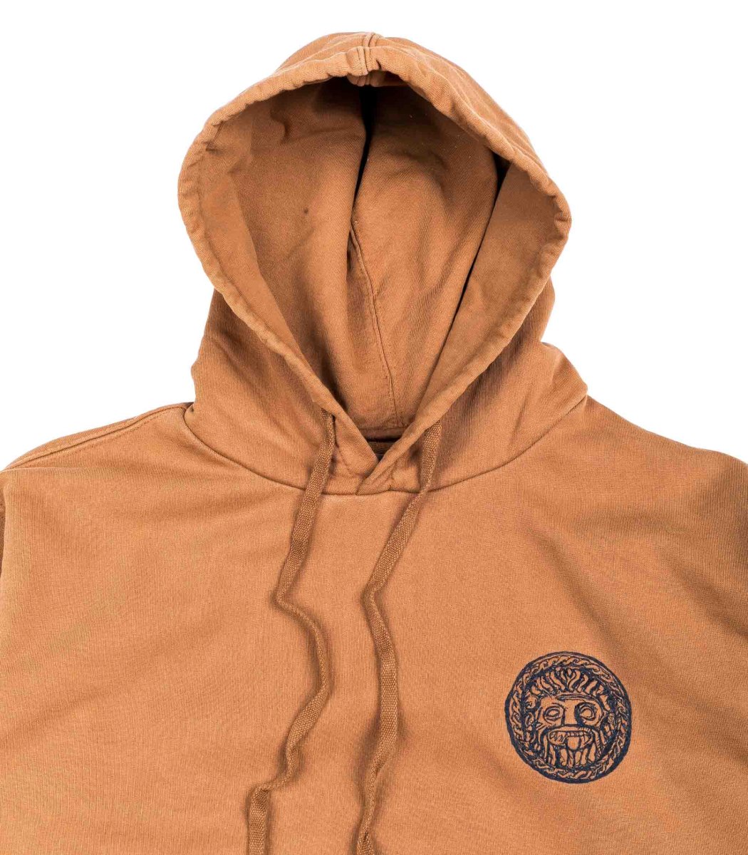 Felpa cappuccio Danilo Paura colore marrone con ricamo logo frontale cotone morbido vestibilità regolare.