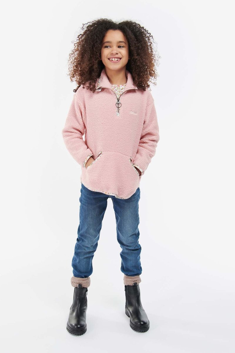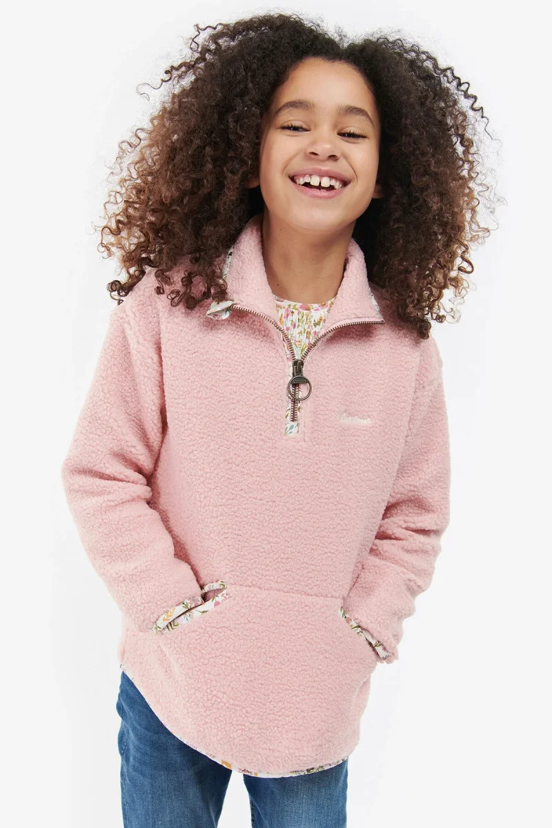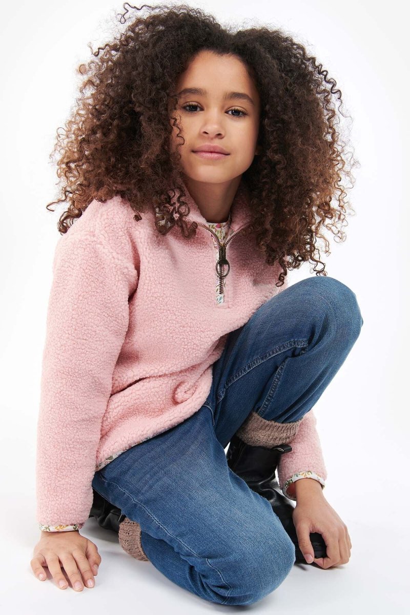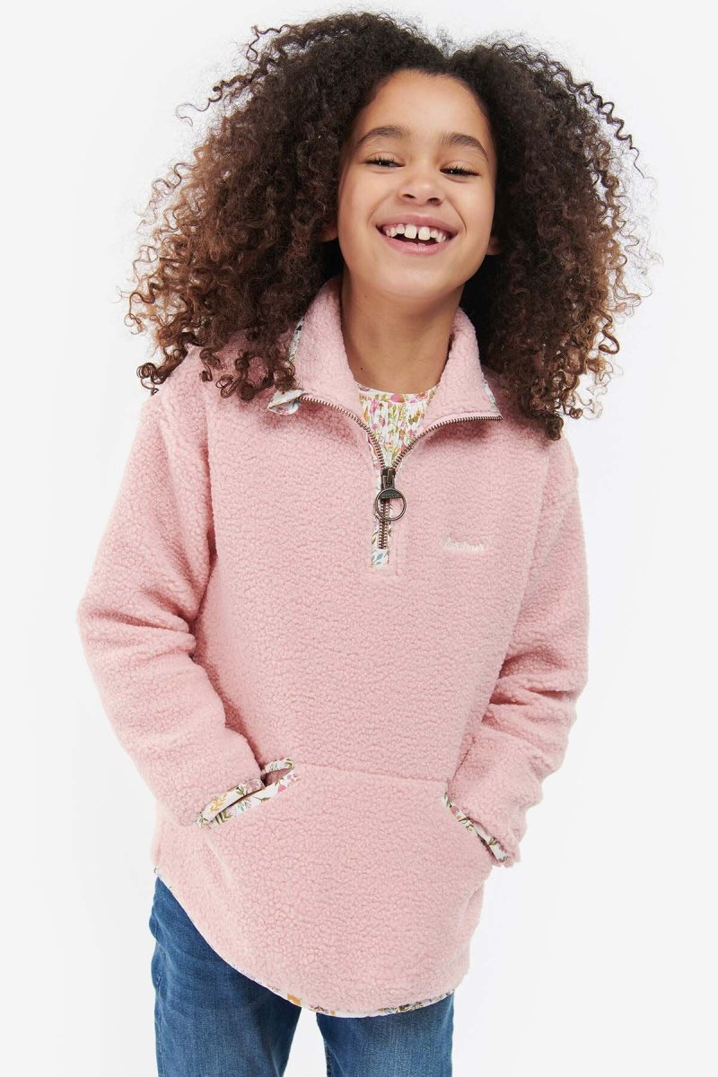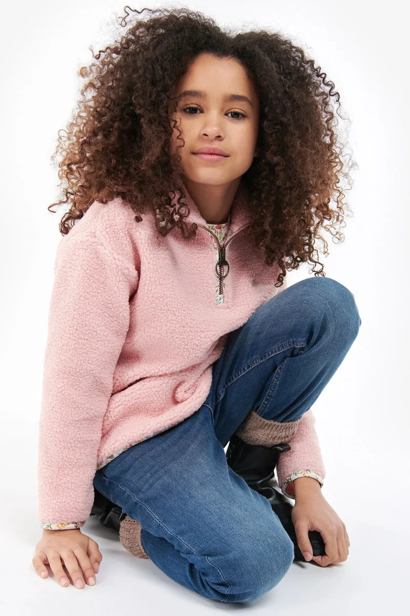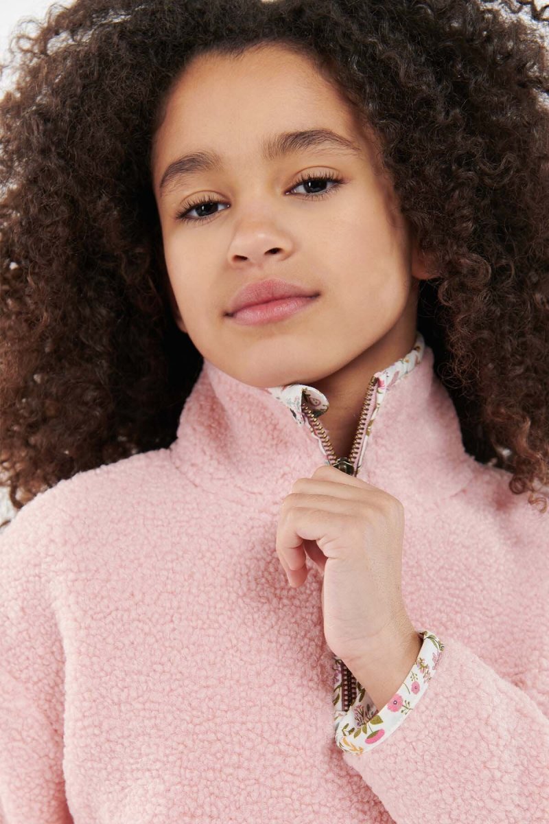In morbidissimo tessuto di pile, la felpa Melby è un grazioso capo di abbigliamento per ragazze. Ideale da indossare sopra un top quando la temperatura si fa più freddina, questo capo di riferimento presenta un ricamo con il marchio, finiture floreali e una funzionale chiusura a mezza zip sul collo.
