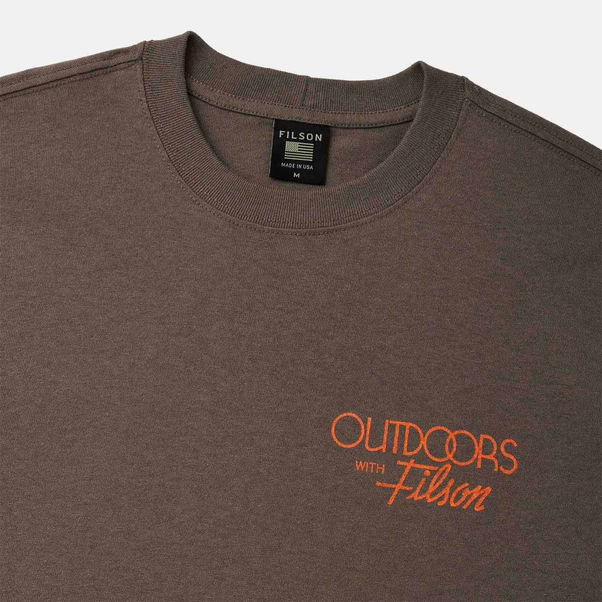 La nostra Pioneer Graphic T-Shirt è un capo di abbigliamento affidabile e resistente, adatto ad ogni guardaroba. È realizzata al 100% in cotone jersey da 184 g , dalla texture piacevole al tatto. Il robusto colletto a coste è molto elastico e mantiene inalterata la forma anche per anni. Le grafiche personalizzate sono prodotte direttamente da Filson e sono tinte con un procedimento speciale che permette ai colori di rimanere vivaci a lungo. Un vero must-have con grafica originale Alaskan Outfitter.