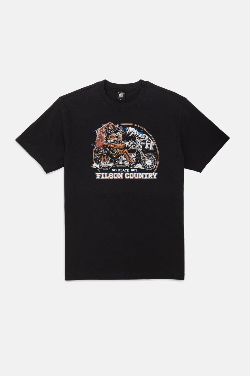 La nostra Pioneer Graphic T-Shirt è un capo di abbigliamento affidabile e resistente, adatto ad ogni guardaroba. È realizzata al 100% in cotone jersey da 184 g , dalla texture piacevole al tatto. Il robusto colletto a coste è molto elastico e mantiene inalterata la forma anche per anni. Le grafiche personalizzate sono prodotte direttamente da Filson e sono tinte con un procedimento speciale che permette ai colori di rimanere vivaci a lungo. Un vero must-have con grafica originale Alaskan Outfitter.
