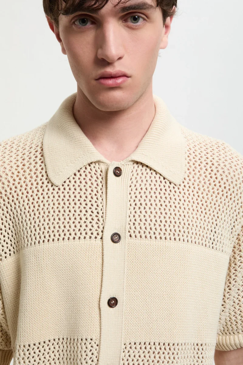 Polo in maglia con bottoni e colletto classico. Perfetta da indossare da sola o aperta sopra la tua t-shirt preferita.