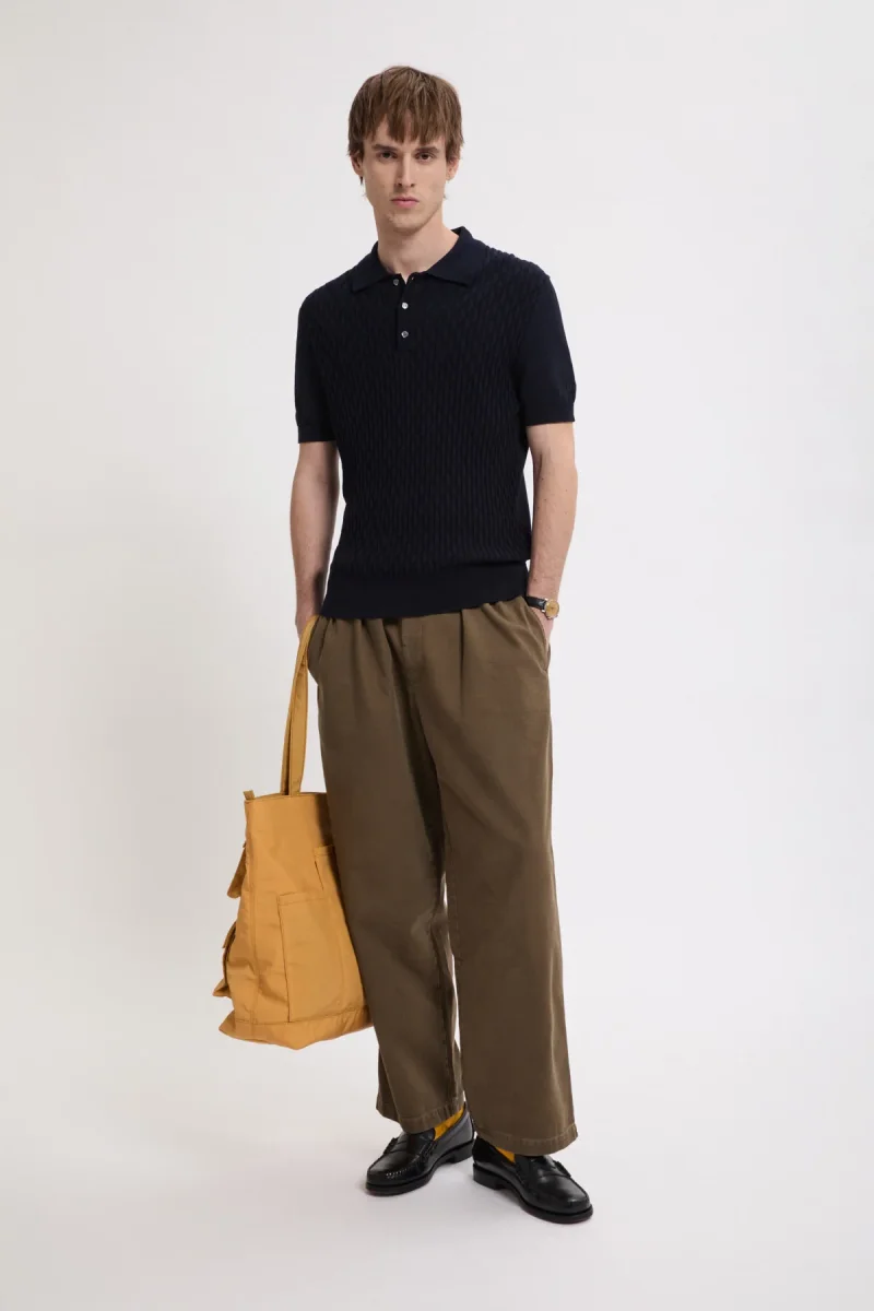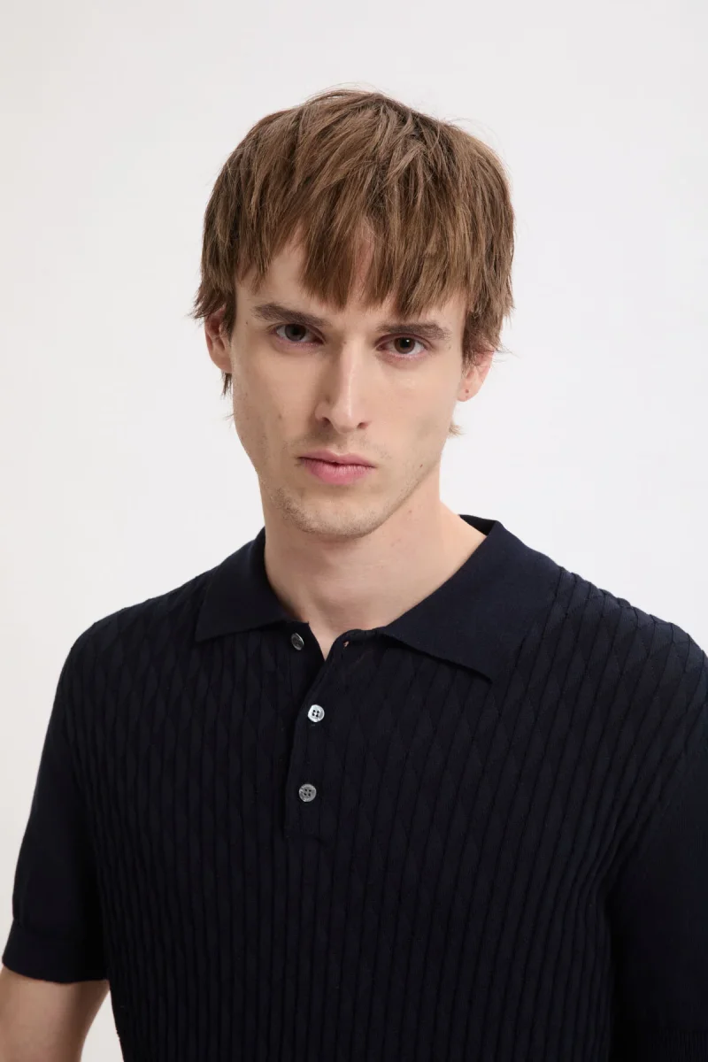 La polo a maniche corte Pattern Stitch è realizzata al 100% in un cotone selezionato appositamente per la sua durevolezza. Questo materiale offre una traspirabilità e una resilienza naturali che rendono il capo ideale per l’uso quotidiano. Ciò che contraddistingue questa polo è la cucitura a diamante sul davanti, un motivo ottenuto attraverso un’accurata lavorazione a maglia.