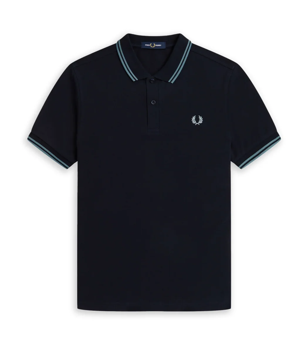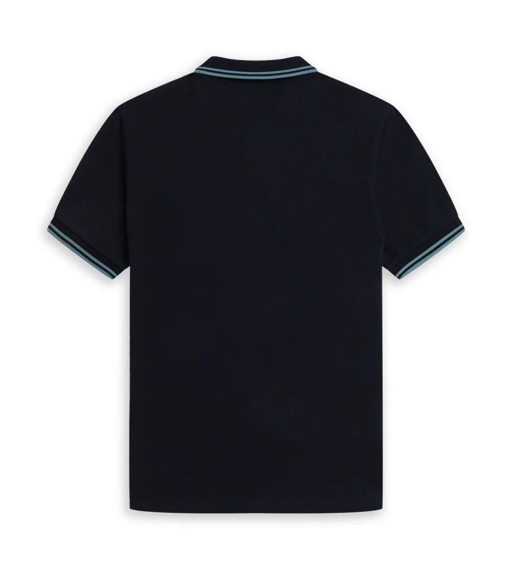 Polo Fred Perry manica corta colore blu da uomo con logo ricamato frontale cotone morbido vestibilità regolare.