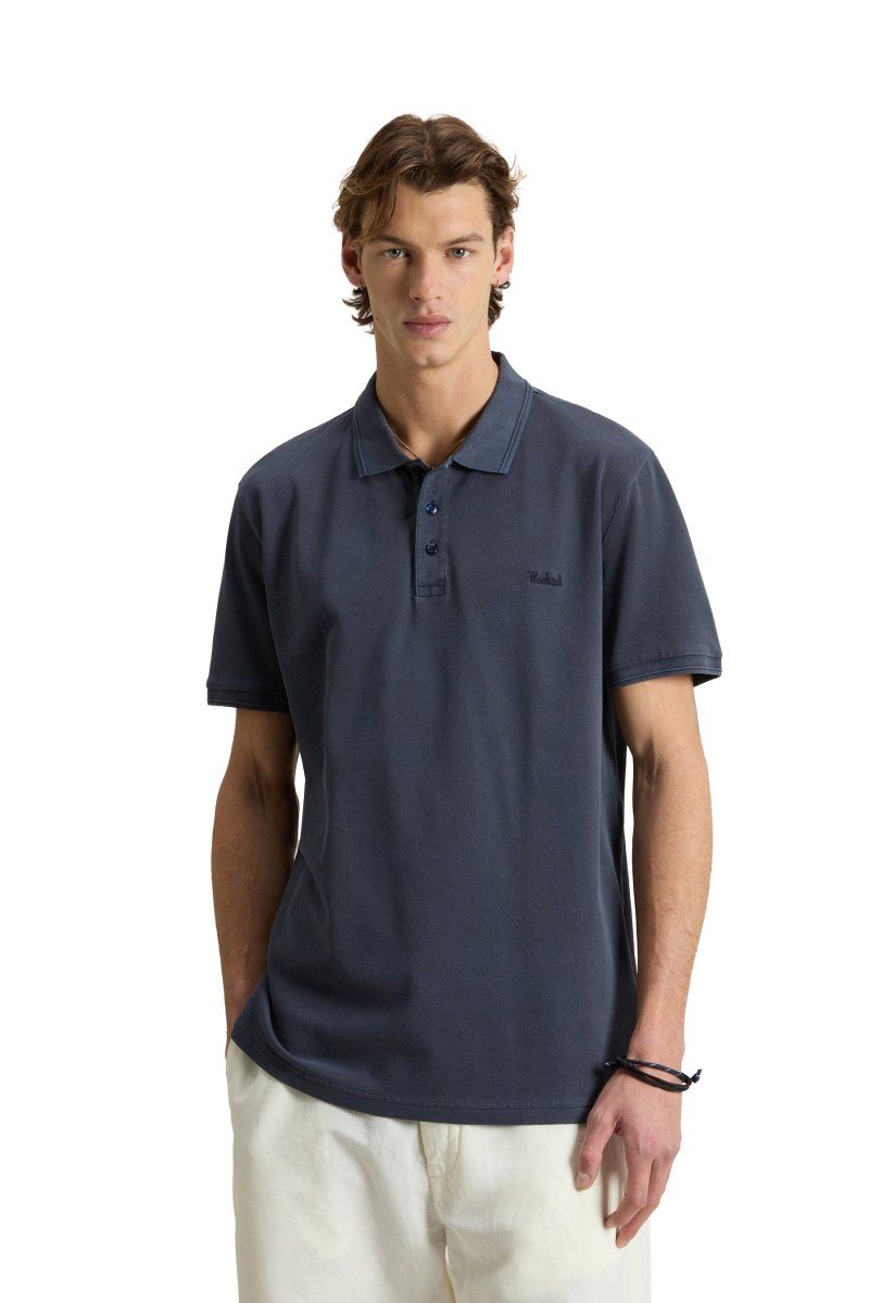 Polo Mackinack in Piqué di Cotone tintocapo blu di Woolrich.