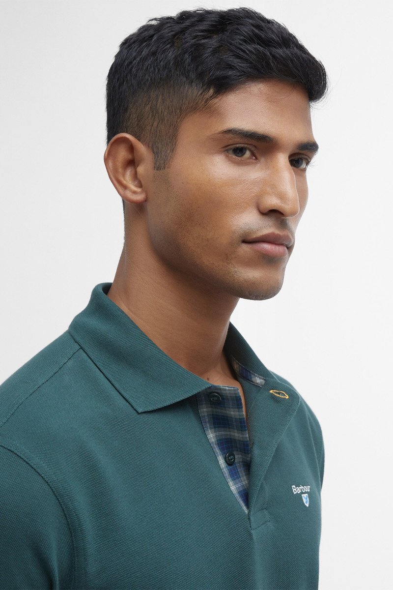 La classica polo con un tocco contemporaneo, questo modello a maniche corte è realizzato in piqué di cotone e decorato con il tartan di Barbour all’interno della pattina e sul retro del collo. Questo top dal taglio sartoriale ha il logo Barbour e lo stemma ricamato sul petto. Altezza modello: 6’0″, veste la taglia M