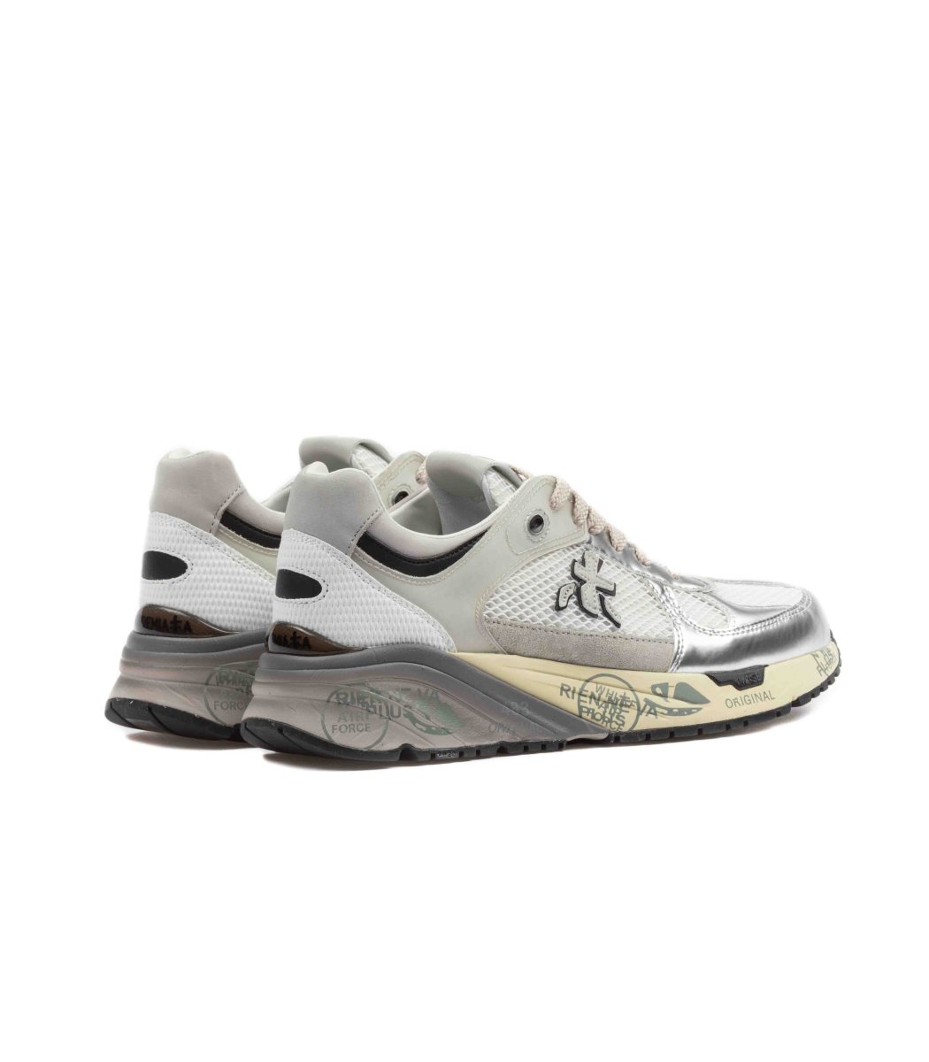 La Premiata Mase 7402 è una scarpa da sneakers di alta qualità, progettata per unire comfort, stile e funzionalità. Questo modello fa parte della collezione di calzature del brand Premiata, noto per la sua attenzione ai dettagli e la combinazione di materiali pregiati. La Mase 7402 presenta un design moderno e dinamico, caratterizzato da linee pulite e una struttura leggera, che la rende ideale per un look casual ma ricercato. La tomaia è solitamente realizzata con una combinazione di pelle, tessuti tecnici e materiali sintetici, che offrono resistenza e traspirabilità.