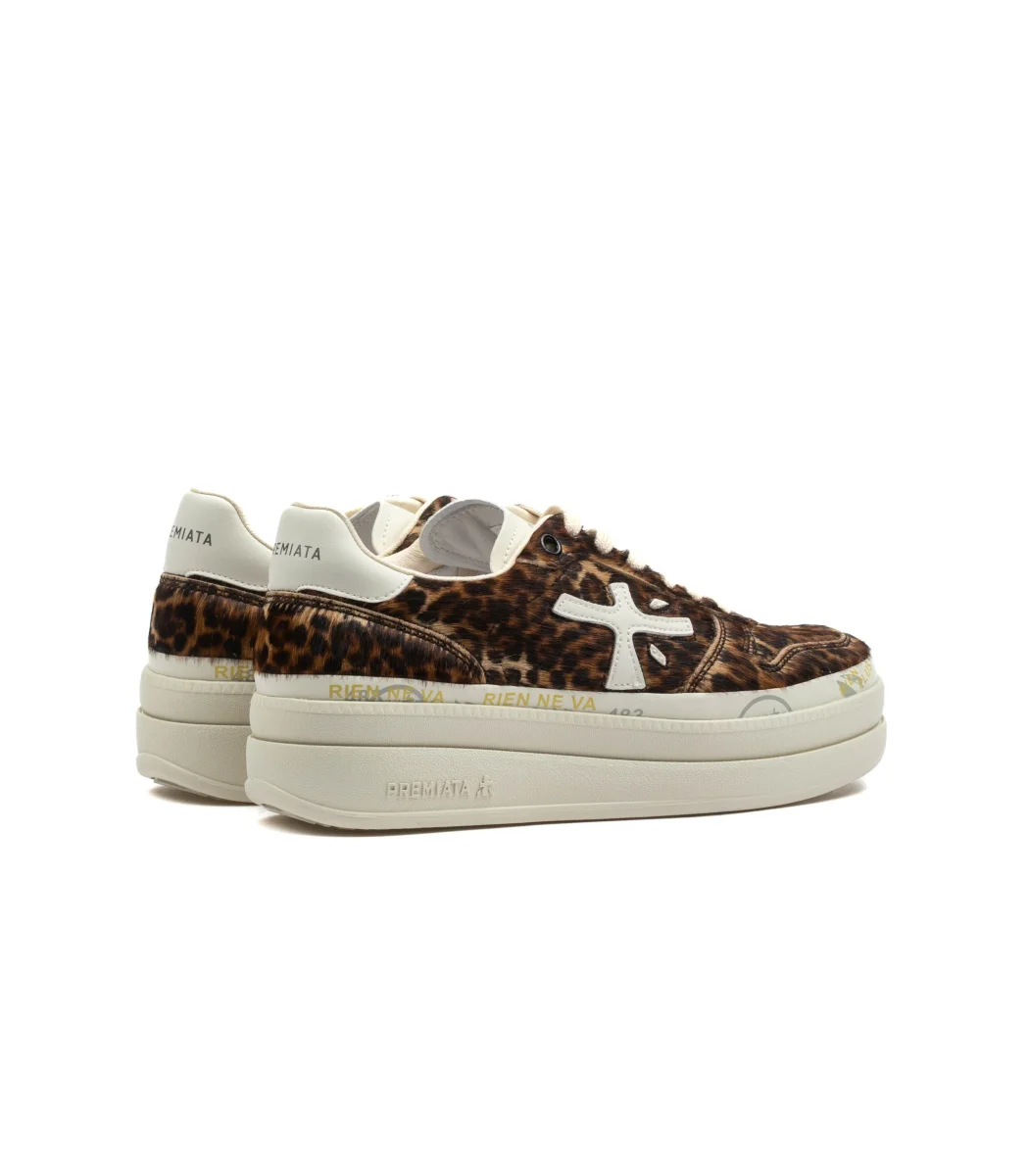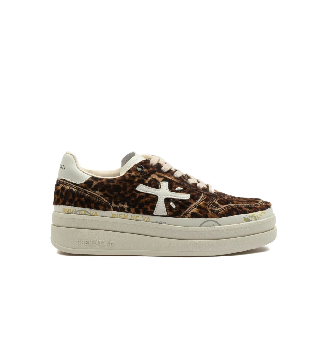 Le Premiata Micol 7034 da donna combinano l’eleganza della pelle con il carattere deciso della stampa leopardata sintetica, per una sneaker dal forte impatto visivo. La tomaia mixa materiali premium e dettagli animalier, creando un design unico che unisce sofisticatezza e spirito contemporaneo. La suola leggera e ammortizzata, arricchita dai classici dettagli grafici Premiata, assicura comfort e durata nel tempo. Perfette per chi ama distinguersi, le Premiata Micol leopardato donna si abbinano facilmente sia a look casual streetwear che a outfit più ricercati. SKU: 7034-MICOL