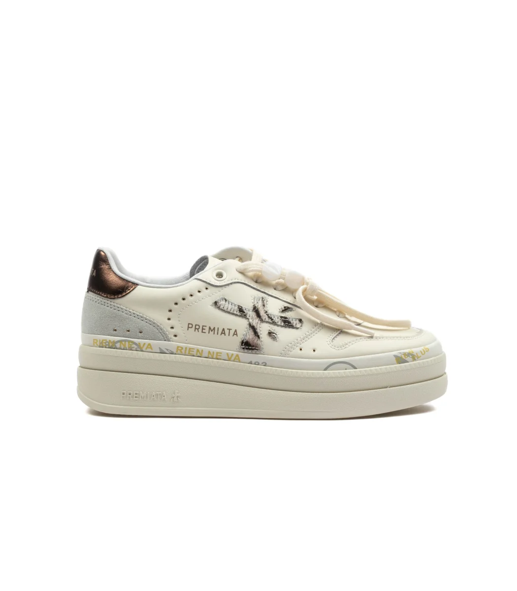 Le Premiata Micol 7035 da donna reinterpretano la sneaker urban-chic con una combinazione esclusiva: base in pelle bianca premium e dettagli leopardati a contrasto, per un look deciso ma sofisticato. L’estetica ricercata incontra la comodità quotidiana, rendendo queste sneakers un must-have per chi ama distinguersi. La suola iconica Premiata con grafiche a contrasto assicura leggerezza, resistenza e uno stile inconfondibile. Perfette da indossare con jeans, pantaloni relaxed o abiti minimal, le Premiata Micol bianche leopard donna esaltano ogni outfit con un tocco contemporaneo. SKU: 7035-MICOL