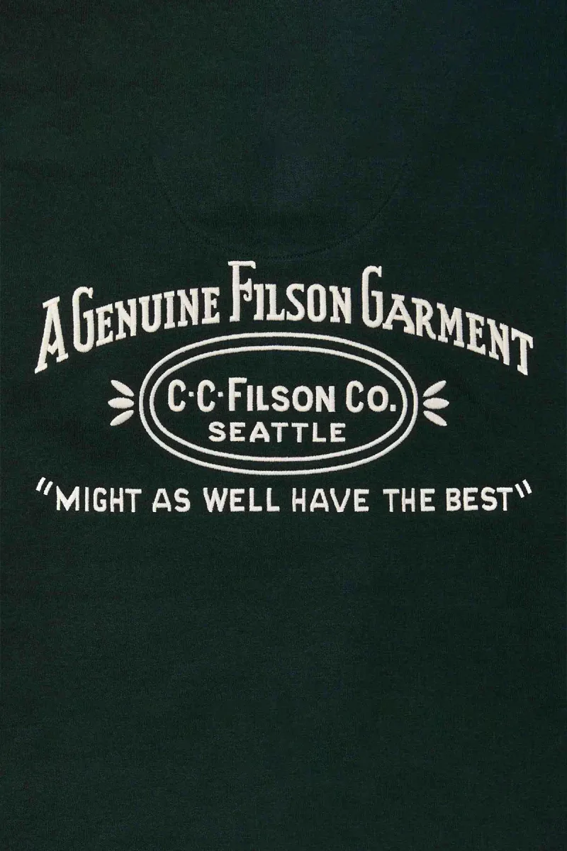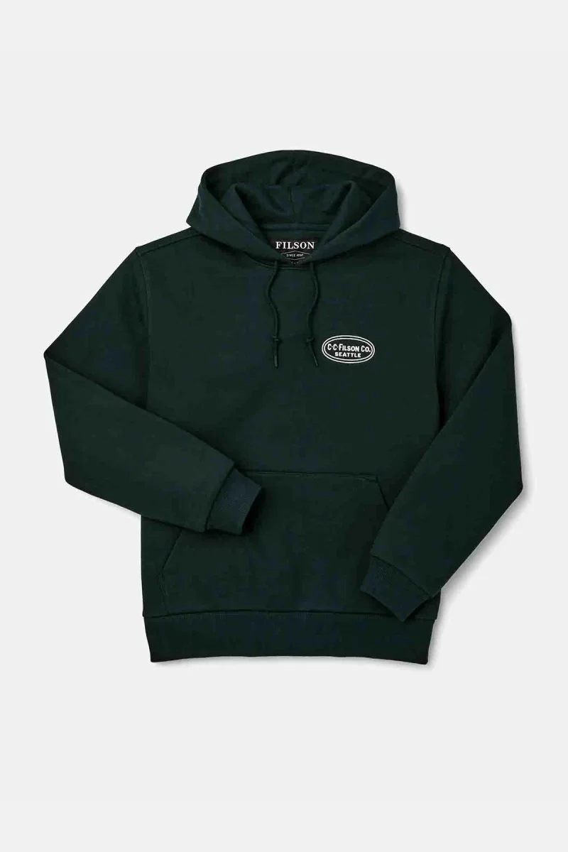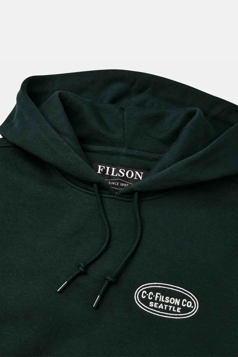 La nostra felpa con cappuccio Prospector è una vera icona, calda e resistente, con grafica del logo Filson ricamata direttamente sul davanti e sul retro. Grazie all’imbottitura interna e allo strato esterno resistente al pilling, il robusto pile da 368 g mantiene la forma per anni. Orlo e polsini a coste. Cappuccio regolabile con coulisse. Tasca centrale a marsupio.