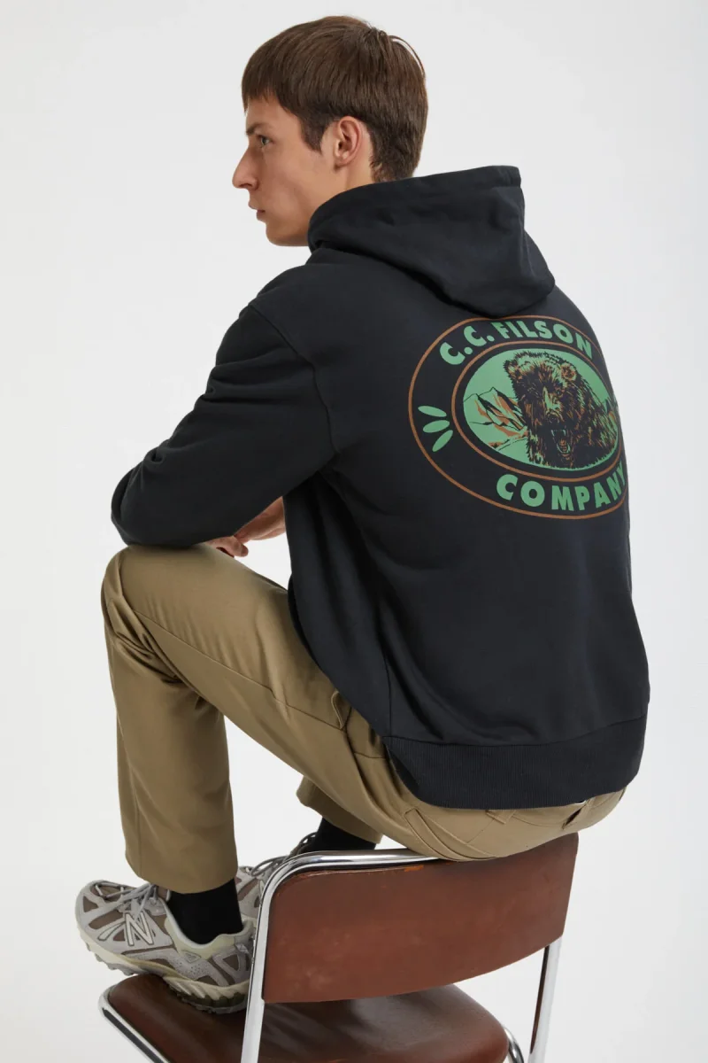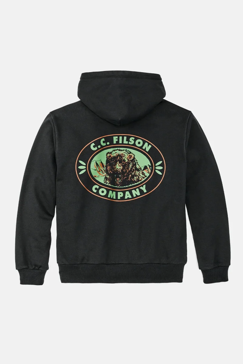 Il robusto tessuto in 75% cotone / 25% poliestere vanta un interno isolante che trattiene il calore e una superficie esterna liscia che resiste al pilling. Inoltre, il poliestere incluso nella composizione aiuta a evitare che il capo si restringa. L’orlo e i polsini presentano una robusta lavorazione a coste larghe che assicura una vestibilità su misura e un’elasticità eccezionale, senza che il capo corra il rischio di sformarsi. L’ampio cappuccio può essere indossato sopra un cappellino da baseball ed è regolabile grazie alla coulisse per godere di una maggiore protezione nelle giornate di vento. Completano il look la tasca frontale a marsupio, la grafica personalizzata disegnata da Filson, i polsini e l’orlo a coste ultra-resistenti che non perdono la forma nel tempo e il cappuccio, che può essere regolato grazie alla coulisse.