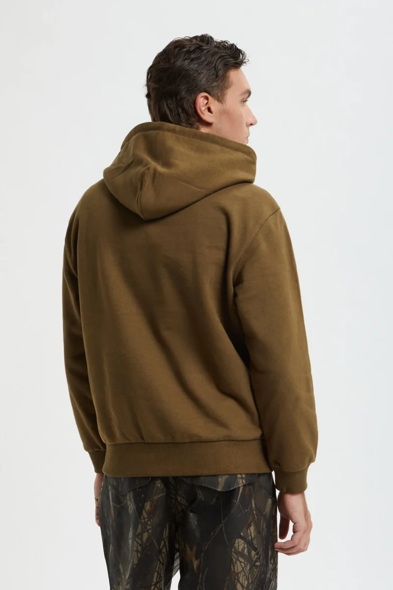 Il robusto tessuto in 75% cotone / 25% poliestere vanta un interno isolante che trattiene il calore e una superficie esterna liscia che resiste al pilling. Inoltre, il poliestere incluso nella composizione aiuta a evitare che il capo si restringa. L’orlo e i polsini presentano una robusta lavorazione a coste larghe che assicura una vestibilità su misura e un’elasticità eccezionale, senza che il capo corra il rischio di sformarsi. L’ampio cappuccio può essere indossato sopra un cappellino da baseball ed è regolabile per mezzo della coulisse, perfetto per difendersi contro le folate di vento.