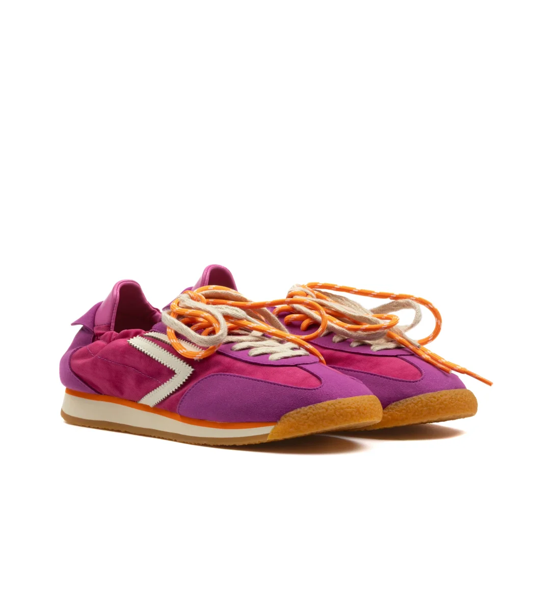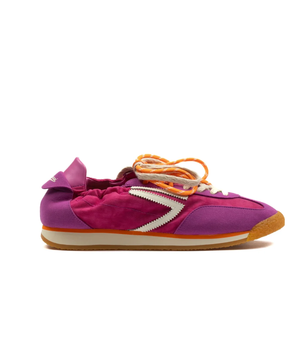 Le Puraai Panther Vintage Nylon AM Magenta sono sneakers dal mood retro running con un twist super energico: mix di nylon vintage e dettagli che danno texture, con la colorazione magenta che fa subito statement. La silhouette resta lifestyle e facile da portare, ma qui il punto è proprio il colore: perfette per dare vita a outfit neutri (nero, grigi, denim, beige) senza impazzire con abbinamenti complicati. Una sneaker premium e diversa dal solito, ideale se vuoi qualcosa che si noti ma resti pulito come costruzione. SKU: PU602P-029