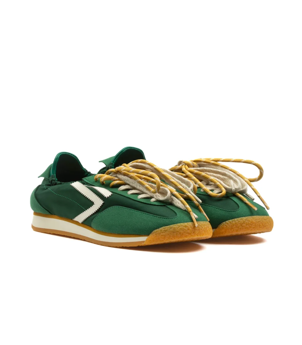 Le Puraai Panther Vintage Nylon Football Verde sono sneakers dal mood retro runner con una palette che si fa notare ma resta super indossabile. Il mix di nylon vintage e dettagli materici dà texture e un feeling premium, mentre il verde “football” aggiunge carattere e funziona benissimo con denim, nero, grigi, beige ed ecru. La silhouette Panther è comoda e lifestyle, perfetta per il daily quando vuoi una sneaker diversa dal solito, ma facile da abbinare senza impazzire. SKU: PU602P-035