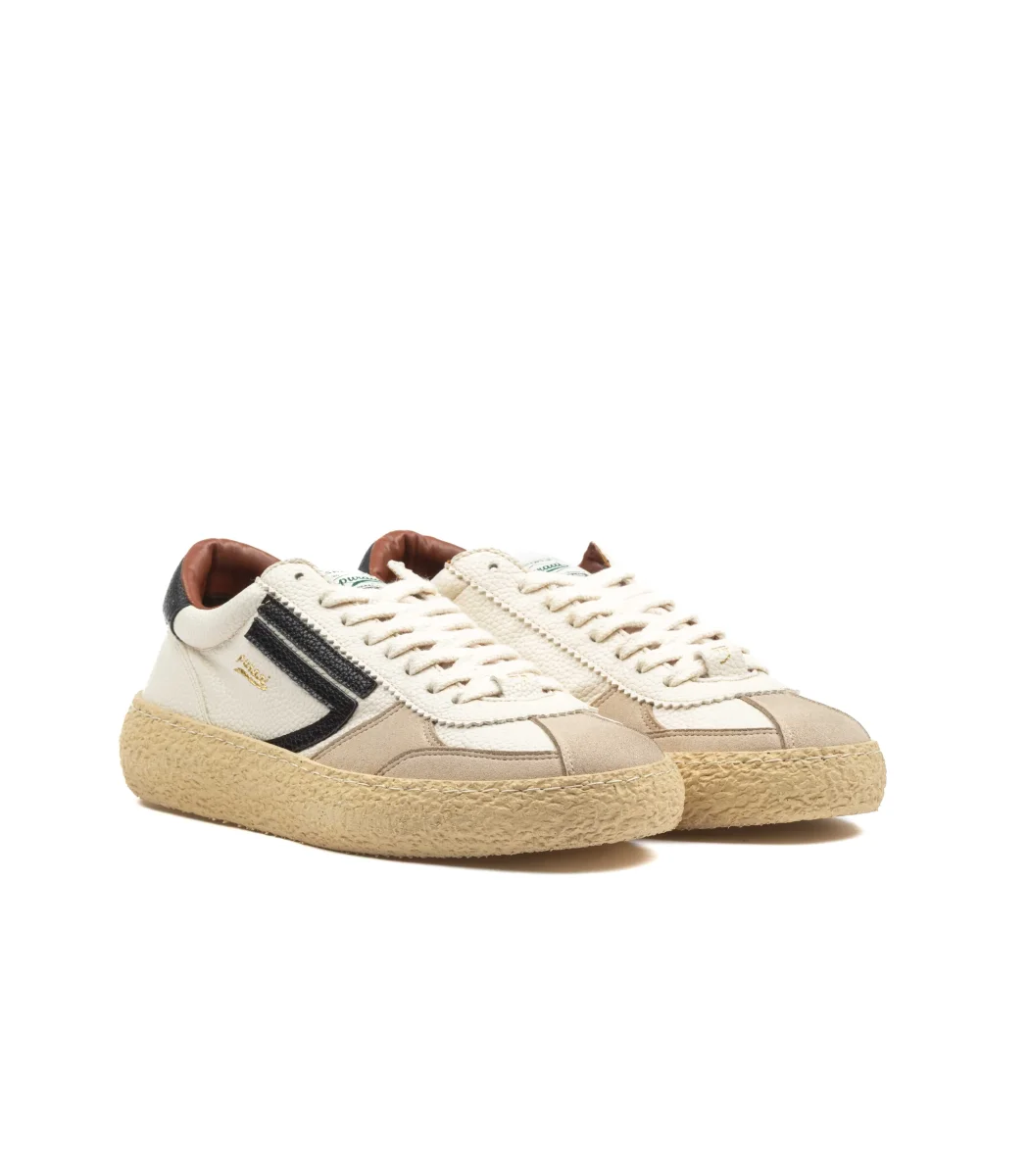 La Puraai Vintage Osso Vegan Leather da uomo in bianco e nero è una sneaker sostenibile che unisce design retrò e materiali innovativi. Realizzata in pelle vegana di alta qualità con produzione Made in Italy, rappresenta una scelta consapevole senza rinunciare a stile e comodità. Il contrasto bianco e nero esalta le linee pulite del modello, rendendolo versatile e facile da abbinare sia con outfit casual che urban. La suola leggera e resistente assicura comfort durante tutta la giornata, mentre il design minimal e raffinato riflette l’anima autentica di Puraai. Una sneaker eco-friendly perfetta per chi cerca uno stile intramontabile con un occhio alla sostenibilità. SKU: PU101V-029