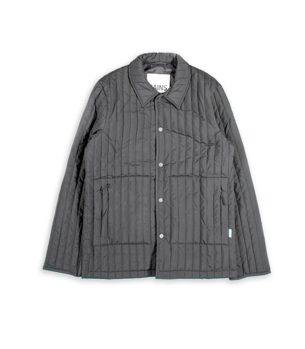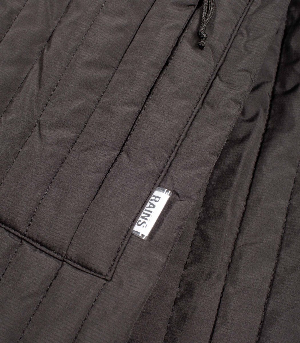Giacca Rains colore nero unisex con bottoni frontali e tasche vestibilità regolare.