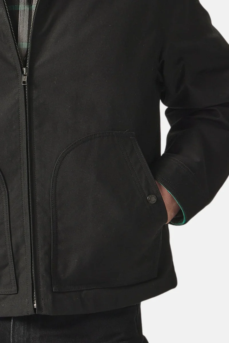 La giacca Ranger Crewman coniuga la funzionalità di una giacca da meccanico vintage e l’estetica inconfondibile dei modelli Filson. Il rivestimento esterno in cotone cerato British Millerain, resistente al vento e agli agenti atmosferici, è abbinato a una fodera in cavalry di cotone robusto sul busto, che regala calore e definisce la struttura del capo, e a maniche foderate in poliestere, che agevolano i giochi di sovrapposizioni. I bottoni in vita e in corrispondenza dei polsini consentono di ottenere una vestibilità personalizzata, mentre le tasche per le mani chiuse da un bottone a pressione sono rivestite in calda flanella Alaskan Guide. Versatile, ideale per la vita di tutti i giorni e fatta per essere indossata per tre stagioni l’anno, questa giacca lunga fino alla vita presenta una chiusura a zip frontale.