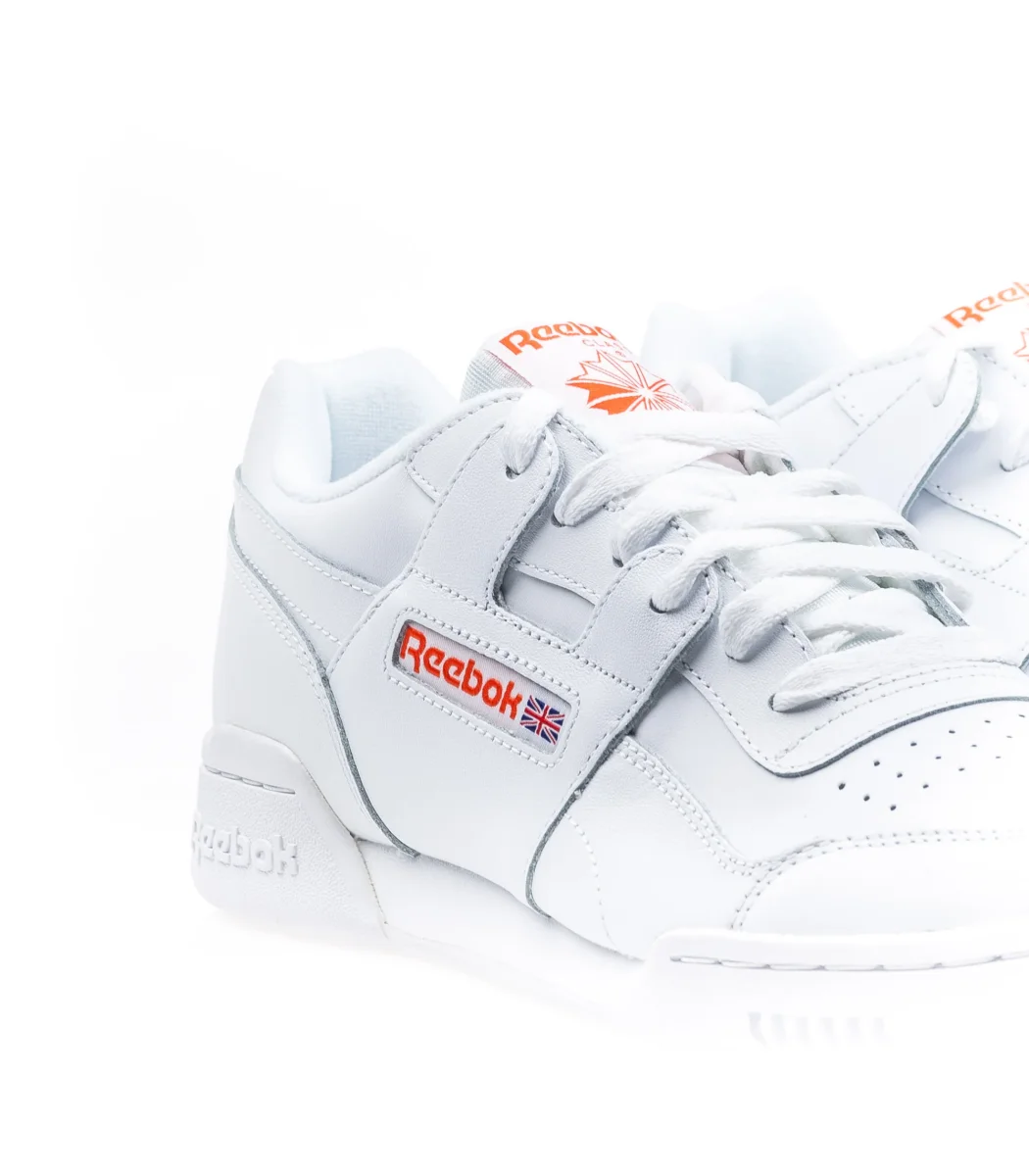 Scarpa Reebok workout plus mu white orange unisex, una sneaker perfetta sia per donna che per uomo, semplice, ma sempre di tendenza, comoda e adatta ad ogni tipo outfit.
