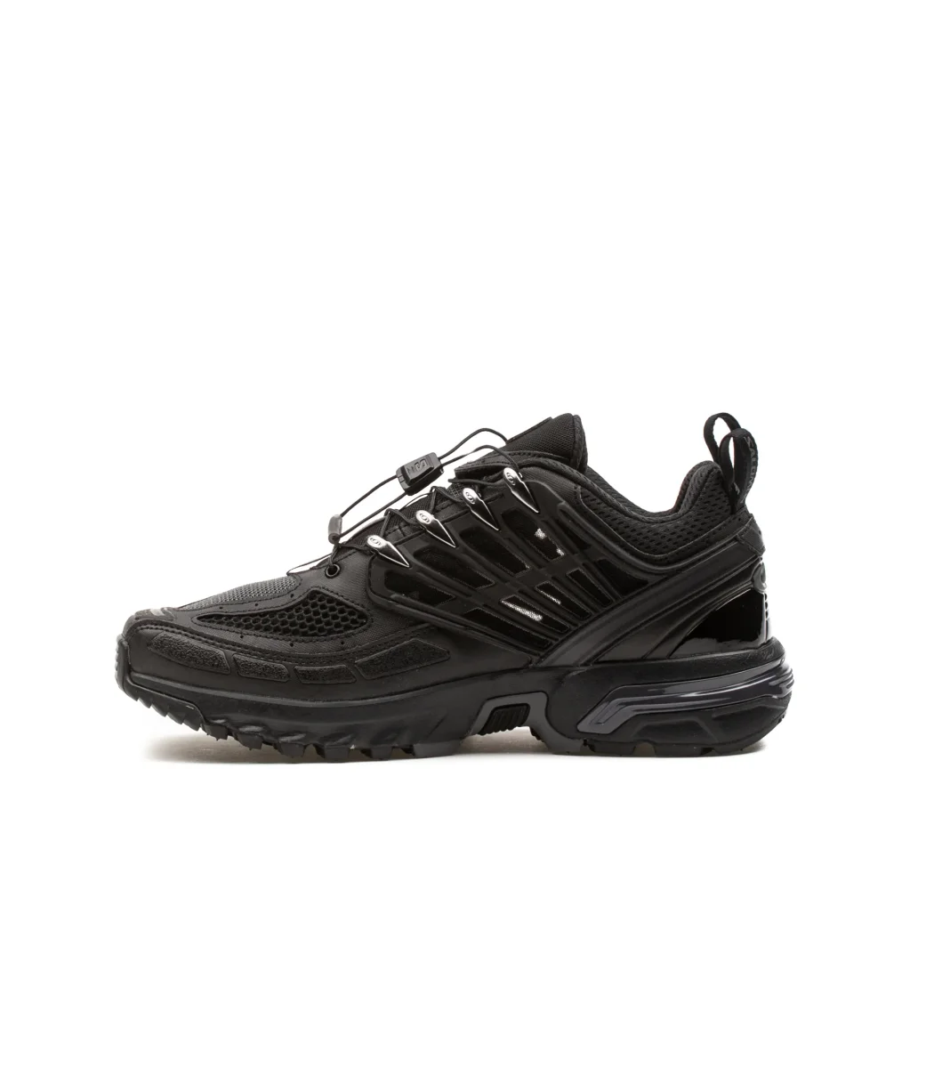 Scarpa sportiva Salomon Acs Pro colore nero unisex Agile Chassis™ System rendondo questa icona del trail running ancora più stabile e performante tomaia avvolgnete e fori laterali per maggiore traspirabilità con una rete 3D sulla parte anteriore.